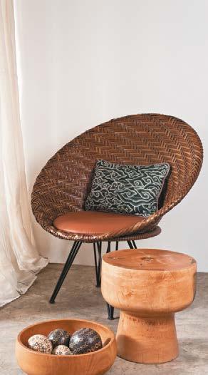 Етнічний стиль передбачає максималь не використання різноманітних елементів декору, що відображають культурні й історич ні особливості певної нації або території. Ба гато чудових інтер’єрних виробів в етнічному стилі можна виготовити власноруч (мал. 13). Велика популярність етнодизайну зумов лена його неповторним різноманіттям, при родністю, яскравістю. У текстильному оздобленні переважають національні орнаменти та фольклорні мотиви (мал. 14). Важливим чинником популярності етно дизайну є його екологічність, оскільки для оздоблення етнічних інтер’єрів використовують переважно натуральні матеріали — дере вину, ротанг, шкіру, каміння, глину, метал, тканини (мал. 15). Іноді в інтер’єрі поєднують декілька ет нічних стилів. Але слід пам’ятати, що спо лучати різні фольклорні мотиви необхідно з дотриманням міри: можна використати 1–2 елементи близьких стилів, а не змішу вати стилі повністю. Так, до японського етностилю в інтер’єрі доречним буде додавання східних і китайських аксесуарів. Український стиль інтер’єру ґрунтується на народних традиціях. Він відтворює етнічні мотиви сільських будинків — це насамперед природні обтічні форми, використання масив них дерев’яних меблів та великої кількості елементів декору (мал. 16). Сьогодні сучасний інтер’єр в українському стилі органічно допо внюють елементами етнічних стилів інших народів, а іноді й елементами класичних стилів. Характерними рисами українського ет нічного стилю є вишивка, кераміка, іко ни, дерев’яні вироби, різноманітні