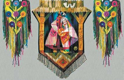 Мал. 20. Гобелен «Весільні ворота», Національний музей народного мис тецтва Гуцульщини Мал. 21. Сучасна косівська кераміка, Гуцульщина Мал. 22. Рушники в сучасному інтер’єрі Мал. 23. Панно з деревини Мал. 24. Українська традиційна ви шивка в інтер’єрі