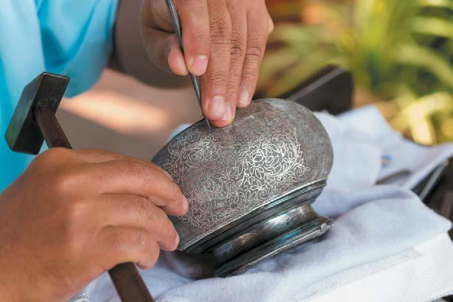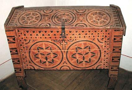 Навчальний модуль: дизайн предметів інтер’єру тирах і будинках можна побачити «мішечок достатку», він символізує багатство й достаток (мал. 17). На такому мішечку обов’язково розміщують різнотрав’я, червоний перець та насіння, які означають довголіття, любов, сі мейне щастя. Дзвоник також є елементом українського етнічного сти лю (мал. 18). Традиційно він символізує хід часу, а його звук — весілля й перемогу. У більшості регіонів роль оберегів виконують деко ративні віники з аплікаціями символами (мал. 19). Такі віники традиційно прикрашають стрічками, сухоцвітами, горішками, горохом, зернами злакових культур. Кожний елемент має давній символічний зміст, відповідно до якого в оселю приходили багатство, здоров’я, щастя тощо. Килими, виготовлені вручну, рушники й серветки з руч ною вишивкою, панно з деревини й кераміки, декоративні подушки, орнаменти на стінах — усе це створює єдиний простір краси, тепла й затишку (мал. 20–24). Серед інших виробів українських народних промислів, здатних прикрасити будь який сучасний інтер’єр, варто назвати різьблені дерев’яні вироби, іграшки, розписані глечики й тарілки, плетені кошики, вишиті скатертини тощо (мал. 25, с. 14).