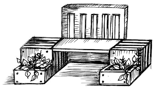 6. Пояснення до кресленика Днище тумби з циліндричними отворами та отвори в кошику забезпечать належний відтік води та надходження кисню до корін ців рослин. Для дренажного шару використано дріб ну гальку, керамзит, подрібнений пінопласт тощо. Керамзит можна використовувати та кож для мульчування верхнього шару ґрун ту. Це унеможливить потрапляння ґрунту на сидіння лавки під час дощу.