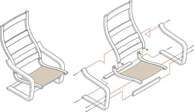 Мал. 55. Кресленик садової лавки в трьох проекціях Мал. 56. Складальний кресленик садової лавки із застосуванням місцевого розрізу