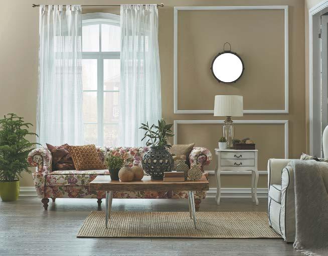 Навчальний модуль: дизайн предметів інтер’єру чітких ліній на користь асиметрії, округлих форм. При цьому стиль модерн консерватив ний і пафосний. Характерною рисою модерну в інтер’єрі є хвилеподібні вигнуті лінії. Ме блі в цьому стилі можуть бути і з прямими кутами, але обов’язково мають витончені елементи: фурнітуру, фігурні вигини ніжок і підлокітників. Аксесуарами у стилі модерн є фігурки під бронзу, срібло, вітражні кар тини, дзеркала в різьблених темних рамах, карнизи з химерними наконечниками, хутря ні подушки, чохли для меблів із контрастних тканин тощо. Базовими відтінками колірної гами модерну є шоколадний, бежевий, чер воно коричневий, сріблястий, чорний, синій, фіолетовий, а також рожевий, білий, жовтий і червоний у невеликих кількостях для контрасту (мал. 10). Етнічний стиль інтер’єру. Особливості українського етнічного стилю інтер’єру Нас оточує багато різних витворів ма теріально художньої культури: рукотворні ландшафти, архітектурні споруди, предмети інтер’єру, одяг тощо. Національні, історичні