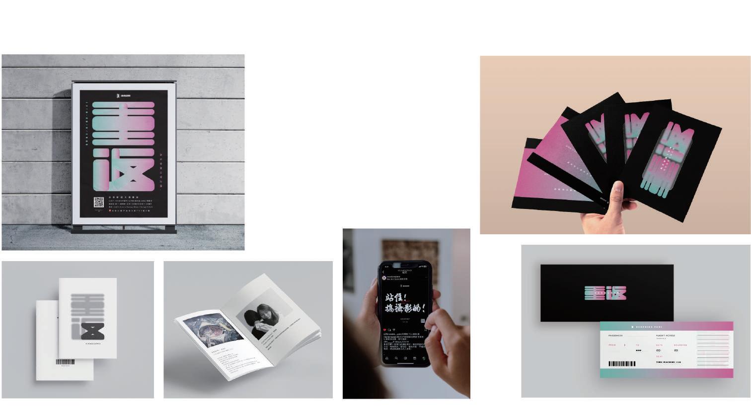 過程中所設計與規劃的有主視覺海報、酷卡、邀請卡、展 場掛軸、展覽手冊、貼紙、展場空間規畫與互動區發想。