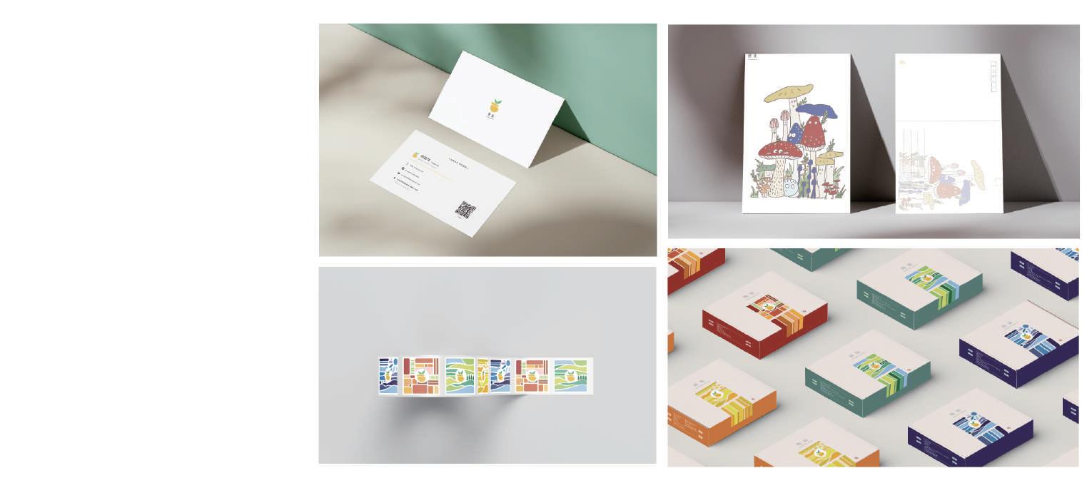 以餐桌上的風景為題,主要結合植栽與調味罐並以整體 為蘑菇森林的造型創作。此logo標誌融合了調味罐與 盆栽的元素,並以較圓潤、清新、有趣的形象展現。