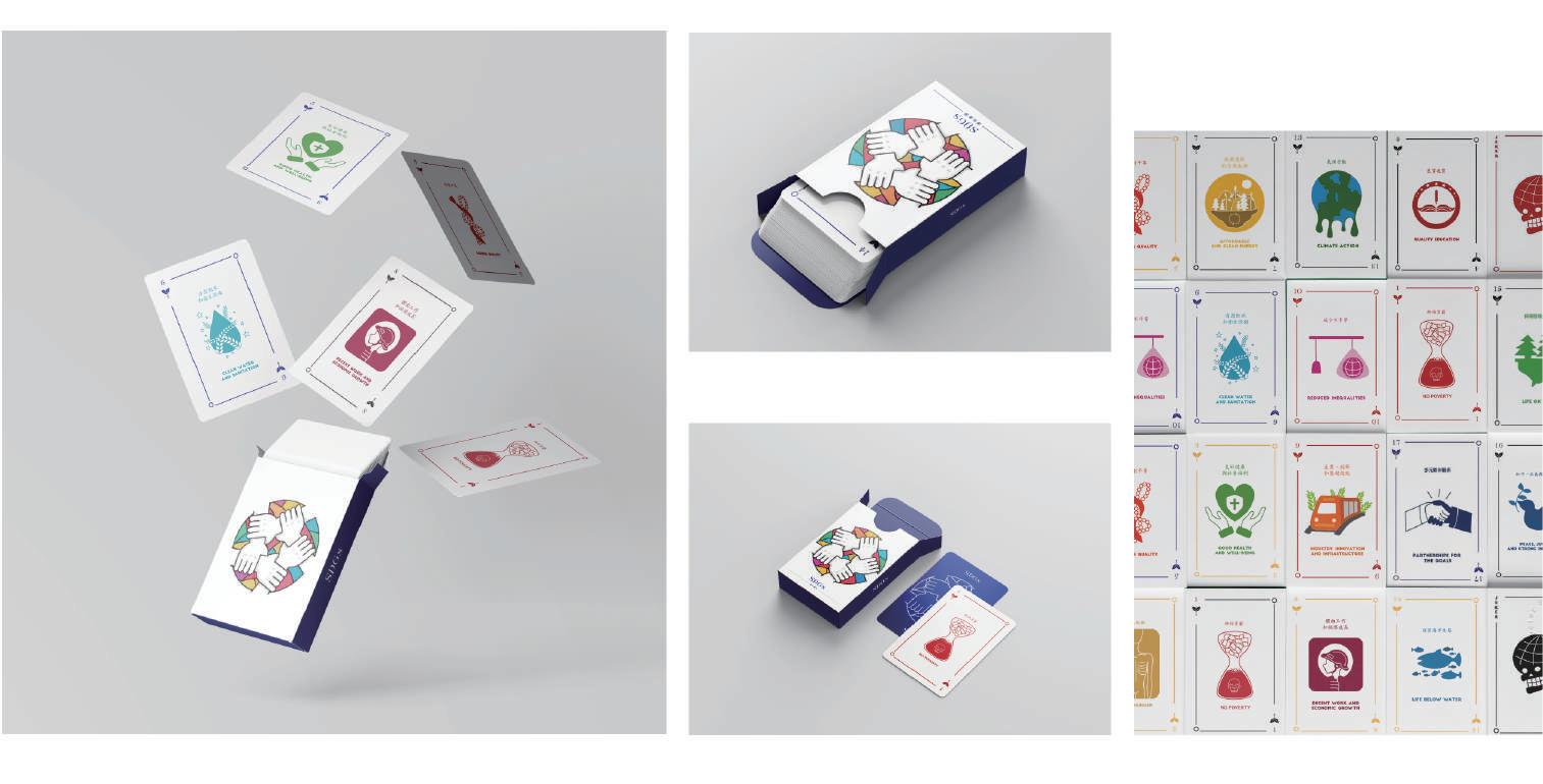 以SDGs永續發展目標為主題,並將每個目標之內容 設計出每張不同圖案的卡牌,讓玩家在娛樂的同時也 能了解SDGs目標內容。