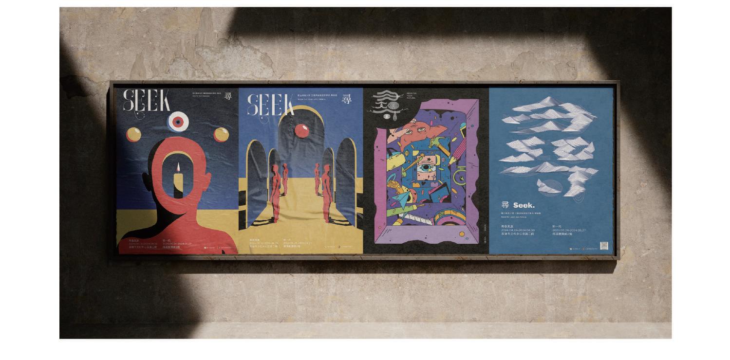 高雄大學畢業展主視覺提案,前兩張以較抽象的呈現 方式表現 “尋”的動作與概念;第三張主要以系