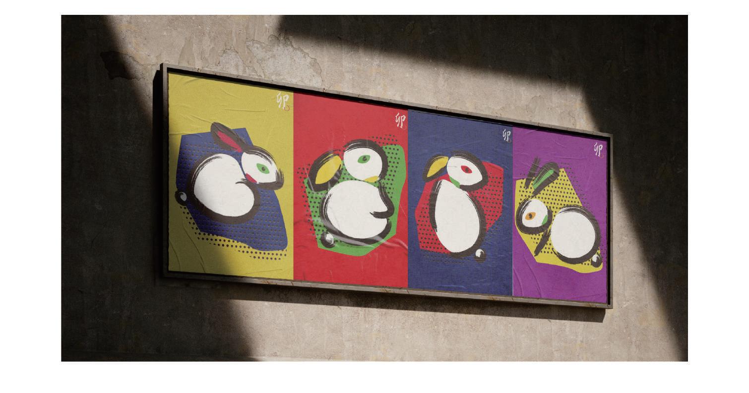 使用毛筆筆刷描繪兔子的樣態,展現東方元素,並使 用對比配色呈現較活潑、明亮的形象,希望新的一年 能過得多采多姿、輕鬆愉快。