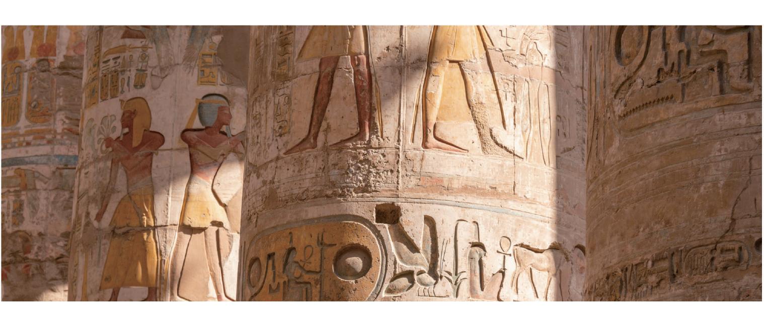 以埃及主題為發想,設計出具有埃及具象元素的 Logo。此Logo設計主要以埃及豔后之形象結合英 文字母,並使用古時埃及壁畫常見的顏色。