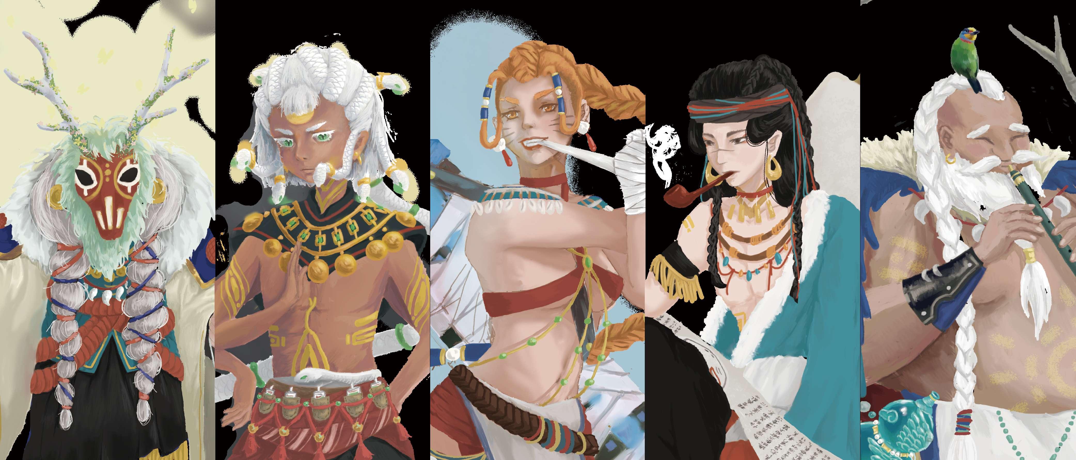 上所常出現的工具與元素創作;最後一張則是 以“於群山層疊中尋找未來”為概念設計。