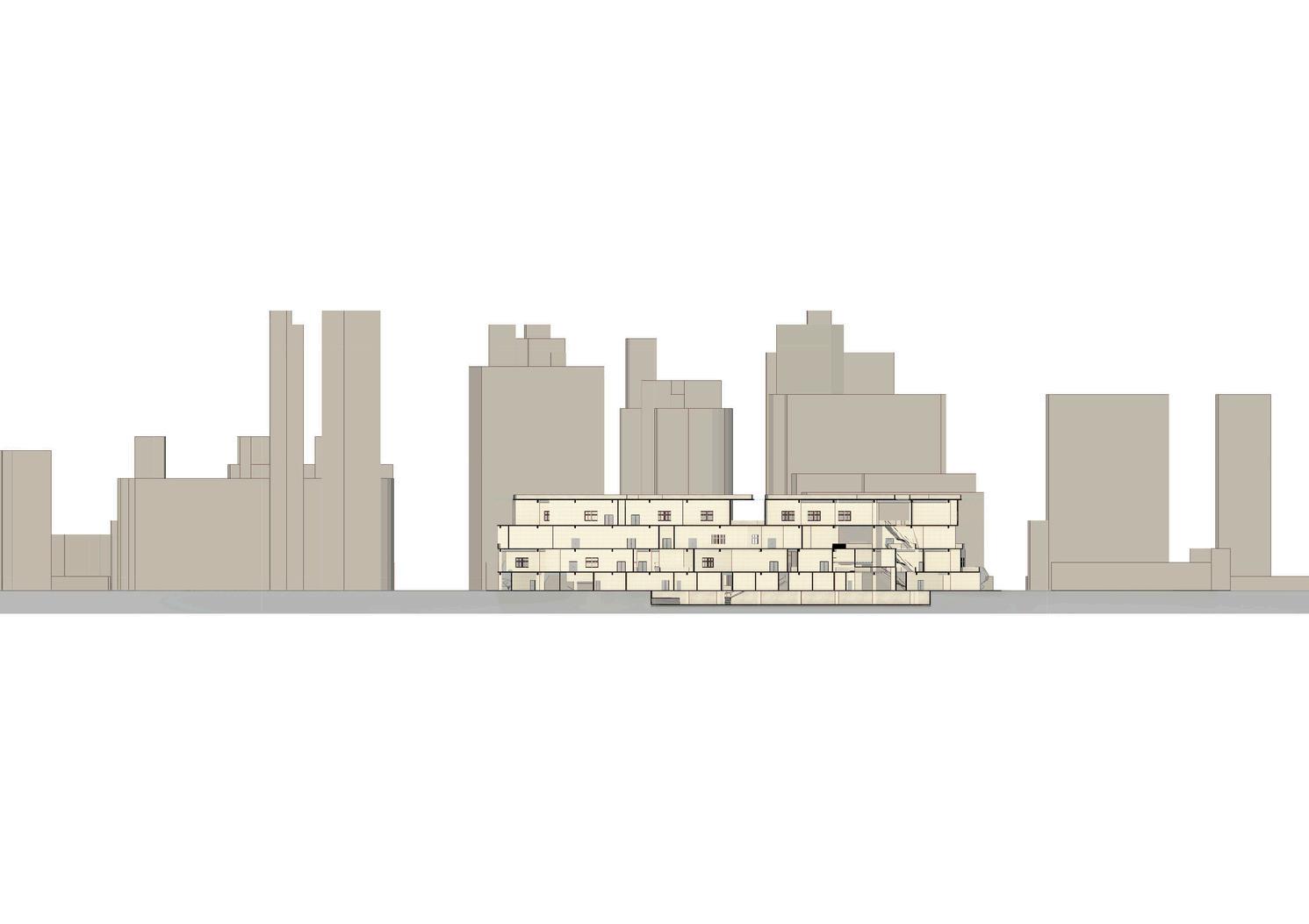 有別於大學城式的封閉學院空間,新的建築學園在土地利用上考慮水平及 垂直化空間創造新的利用方式,並再思考現有建築教育制度且反映在實質空間 安排上,提供教育空間、都市風貌與社區生活有更積極的互動。