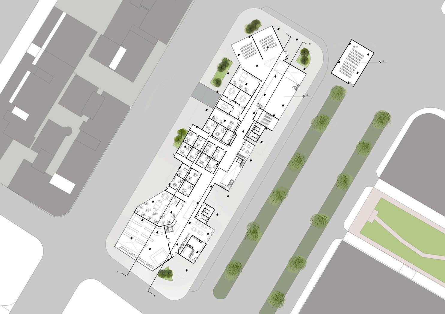 現今建築教育當中在常規的教育通常只侷限在室內空間,但僅僅只是在⼀個 盒⼦裡進⾏課程,不免會限制到學⽣ 與都市的連結性,使學⽣⾝處在都市