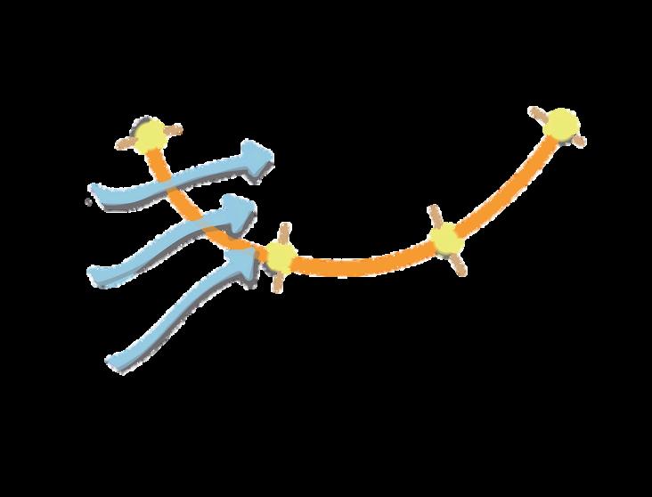 三元素,透過開放路徑, 每條路徑包含三元素打造