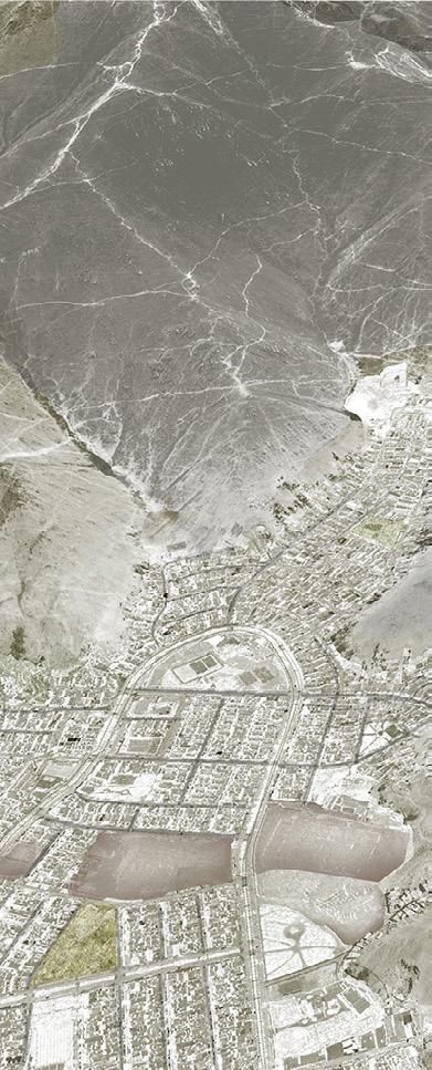 Muestra de trabajos de investigación y elaboración de láminas a escala territorial que buscan representar el paisaje natural y sus intervenciones arquitectónicas como una relación de coexistencia