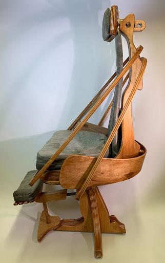 After sanding and finishing, the chair was hand upholstered with removable cushions made of polyurethane.