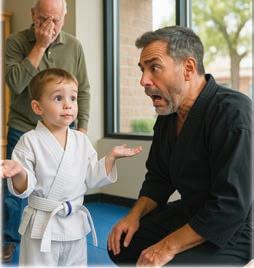 Itwas almost time for our Pre-Karate class. From my desk I could see Justin outside, running full speed towards the front door. He pulled the door in a single yank and dashed into the waiting area. Shoes and socks flew out because Justin didn’t much care where they landed. Walking slowly behind on the sidewalk was his grandfather Mr. Simmons, who most of the time looked like he was carrying the weight of the world on his shoulders. He came in, and momentarily looked up at me, gave me a half smile then followed in toward Justin who was by then standing on a chair in the lounge. I often thought about how hard it must be for Mr. Simmons to raise Justin on his own. Because of some family circumstances he had full custody of this vivacious four year old with sparkling eyes, the energy of an atomic reactor, and the attention span of a flea. He enrolled Justin in our Karate school as a last ditch effort to help him manage this ball of energy who would hit older neighbor kids, bite others at daycare, and even kick his teacher.