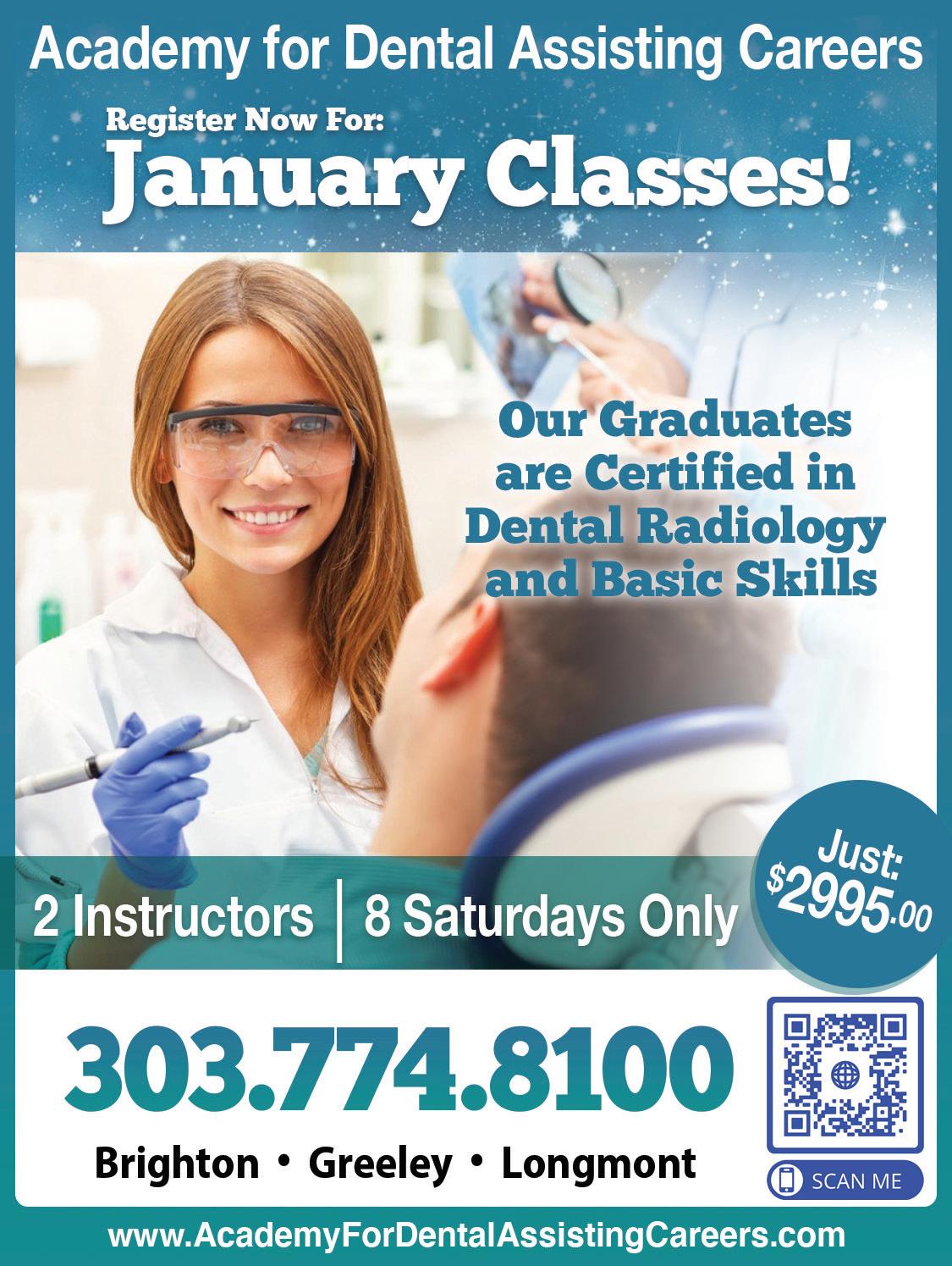 6 Visit us online at: www.TheBrightonBuzz.com The Brighton Buzz | December 2022 Valuable Resources - MOST INSURANCES ACCEPTED303.659.5185 191 TELLURIDE STREET • SUITE 3 • BRIGHTON Concerned about COVID? Please feel welcome to contact us with any questions. • Routine Cleanings • Same Day Crowns • Dental Implants • Tooth Extractions • Dentures • Clear Correct Braces • 3D Imaging • Teeth Whitening • We Offer: www.mountainviewfamilydental.com Brighton’s Oldest Privately Owned Dental Office Dr. John P. Schmidt, DMD General Family Dentistry We want to wish everyone a Happy and safe Holiday Season! Are your 2022 Dental Benefits expiring? Call today to schedule your appointment. f d d e f f * With this Ad. May not be combined. EXP 12.31.22 Clean, Safe & Reliable Environment Happy Holidays! SALON (New clients only) 119 W. Bridge St. • Unit C • Brighton, CO www.ANuDoSalon.com 303.835.2375 Holiday Special 10% OFF Any Service Residential & Commercial • Gas Fireplace Cleaning • Upgrades Available to your current fireplace: Install Remote Convenience, Blowers, Glass, and Rock Call Russell Fresh Today! 303-842-8865 Your Gas Fireplace Cleaning Expert freshlookfireplaces.com Look LookTM Now is the perfect time to clean your fireplace. Colder Weather Is Here! Senior and Military Discounts