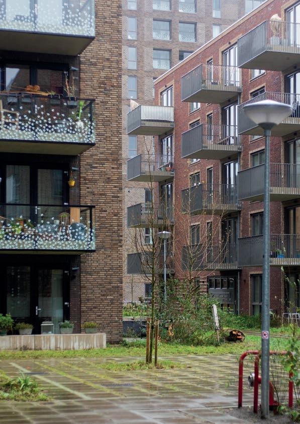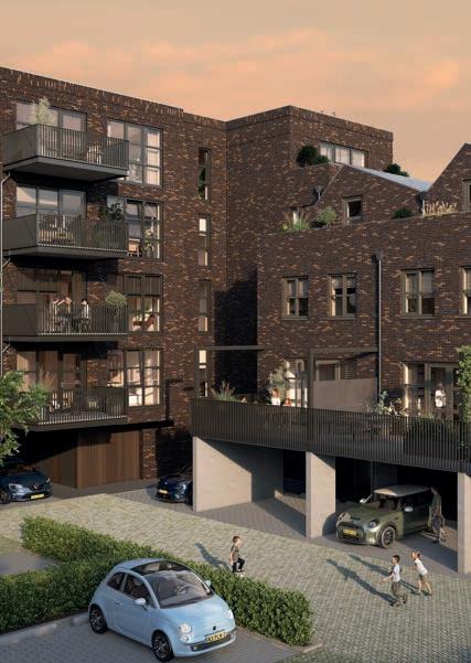 In De Houttuin in Woerden hebben wij een nieuwbouwplan gerealiseerd op de voormalige FNV-locatie, in samenwerking met een ontwerpteam van BAM, Groosman Architecten, Karres en Brands en de gemeente. Het autoluwe plan bestaat uit zes woongebouwen en een centrale HUB, ontworpen in een parkachtige setting die verwijst naar het historische polderlandschap. Variatie in bouwhoogtes, setbacks en een rijk palet aan aardse metselwerkkleuren zorgt voor een dynamisch en samenhangend ensemble. De gebouwen hebben een sterke relatie met het maaiveld, actieve plinten en optimale uitzichten voor bewoners.