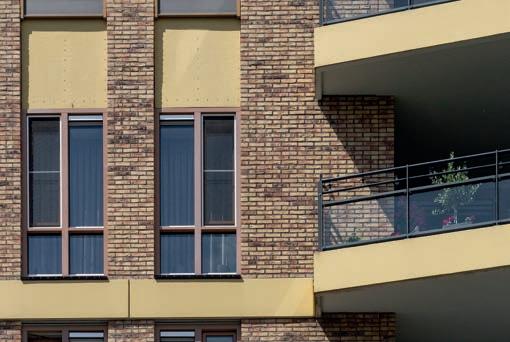 Aanzicht blok met combinatie van metselwerk en stucwerk