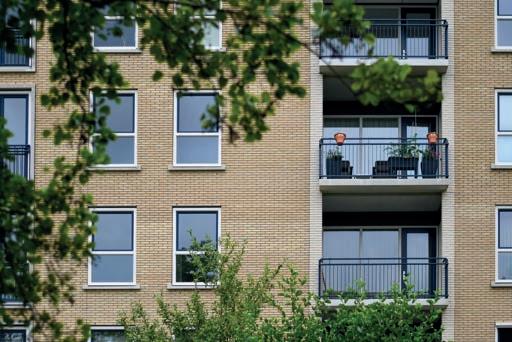 Aanzicht verschillende woningen in dezelfde architectuurstijl