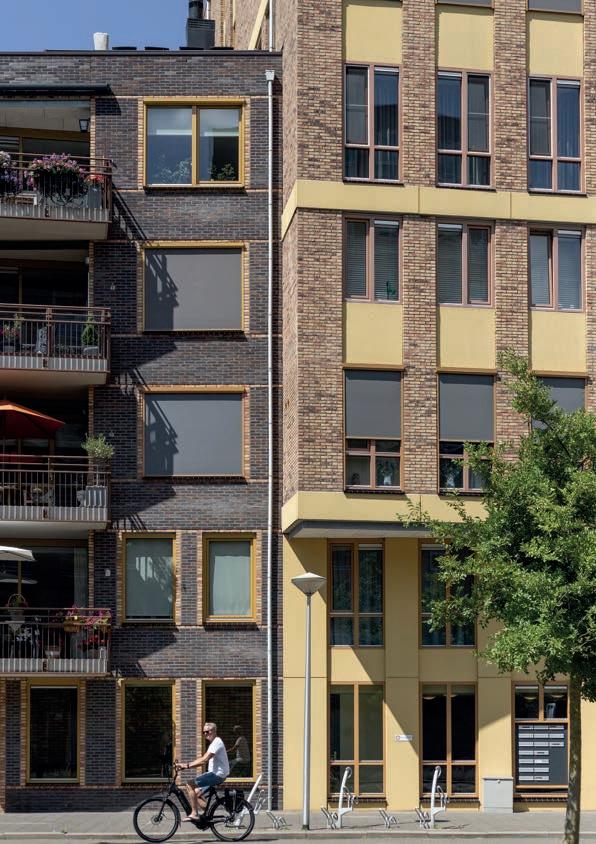 In Utrecht hebben wij een woonzorggebouw gerealiseerd waarin twee programma’s samenkomen: kleinere zorgappartementen en reguliere appartementen. Elk programma heeft een eigen entree en ontsluiting, waardoor de woningen optimaal zijn ingedeeld en de gevel alzijdig georiënteerd is. De parkeerplaatsen liggen half onder het gebouw aan de noordzijde, waardoor de zuidzijde goed aansluit op een parkje. De appartementen beschikken over ruime buitenruimtes, terwijl de zorgwoningen Franse balkons hebben. Twee steenkleuren en horizontale gevellijnen maken de programma’s herkenbaar en verbinden het geheel tot een harmonieuze compositie.