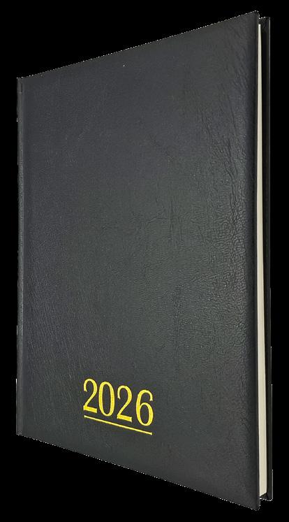 Svört A4 dagbók með einum degi á síðu. Verkefnalistar og tímatafla við hvern dag, pláss fyrir minnispunkta. Tólf mánaða dagatal á opnu. Yfirlitsdagatal áranna 2025, 2026 og 2027. Stærð 19x27 sm.