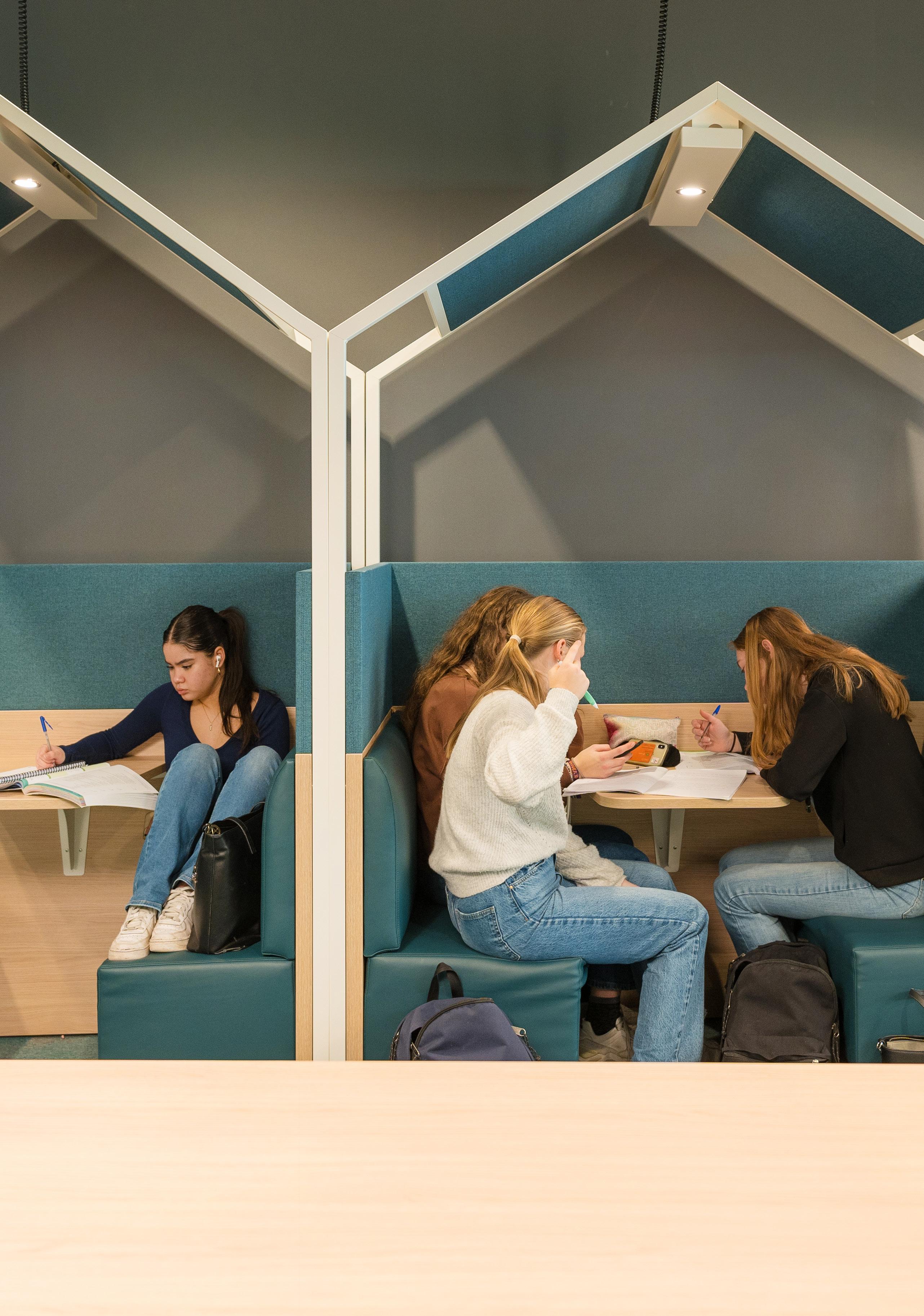 Einingarnar frá Eromesmarko eru hannaðar fyrir opin og fjölbreytt skólarými þar sem sveigjanleiki, einbeiting og samvinna fara saman. Þær skapa einstök svæði fyrir hópavinnu, einstaklingsmiðað nám eða notalegar lestrarstundir – án þess að loka nemendur frá umhverfinu.