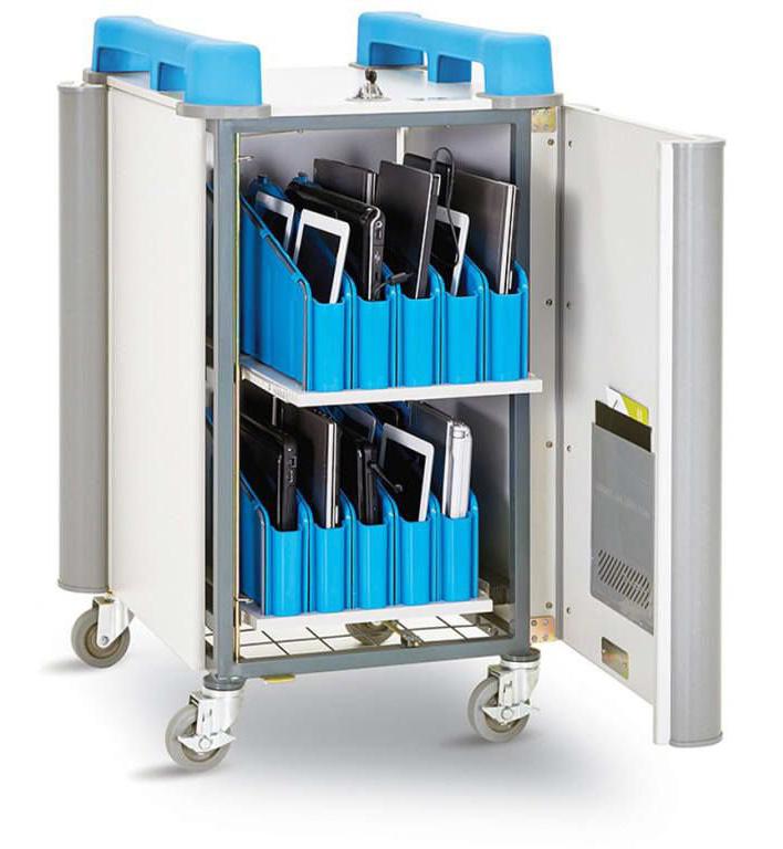 LapCabby 20 device, Vertical - Store & Charge. Geymslu- og hleðslustöð þar sem hægt er að koma fyrir 20 fartölvum eða 20 Chromebooks, hámarkstærð 19”