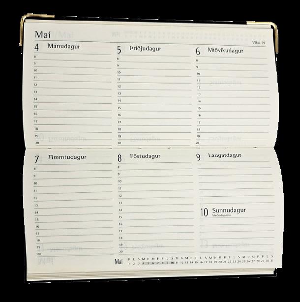 Vasadagbók með viku á opnu. Dagatal áranna 2025, 2026 og 2027. Útflett skipulagsblað fyrir árin 2026 og 2027. Tveggja mánaða dagatal á hverri opnu og um 35 síður af fróðleik og hagnýtum upplýsingum.