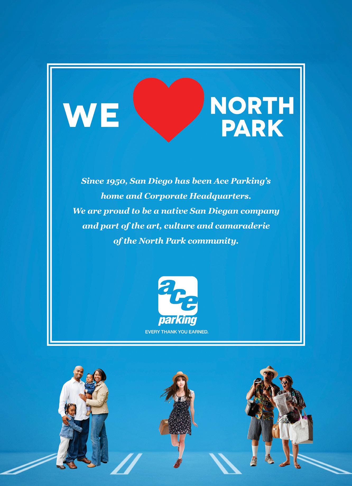 THANK YOU FOR TAKING TIME TO SEE AND READ ABOUT THE VIBRANT COMMUNITY OF NORTH PARK — a community that has made its way back to one of San Diego’s most desirable commercial districts. North Park’s history dates back to the 1800s when it was a place full of opportunity and ingenuity. Years later, people from all over the City visited North Park for its fancy dress shops, jewelry stores and the best department stores in town. As you explore the community, and this magazine, I’m confident you’ll be excited to see how this community is once again a place with bustling streets of shoppers, diners and people of all ages looking to experience a lively, historic urban community full of activity.