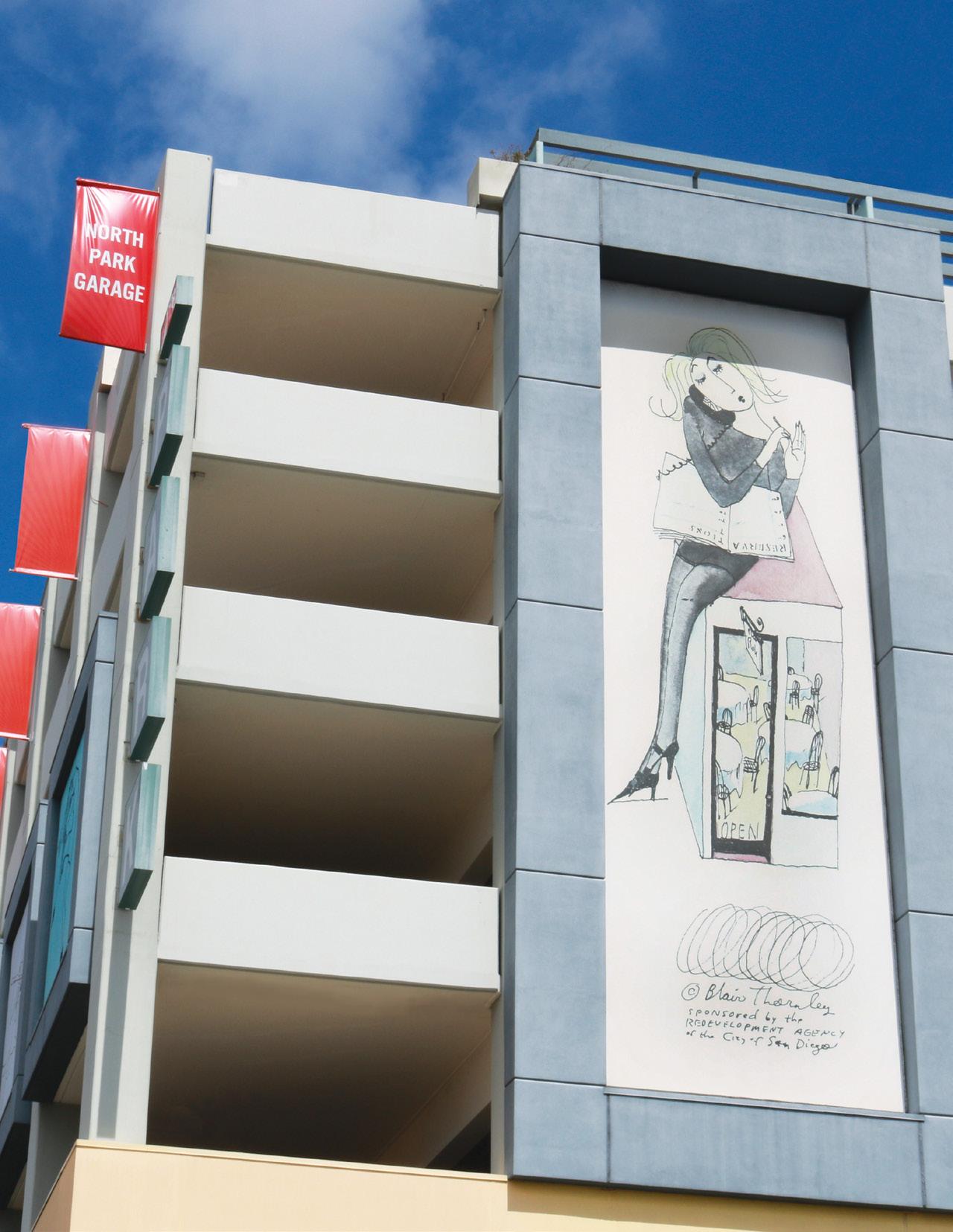 I see colorful storefronts and lots of different styles coexisting on the busy thoroughfares. There’s the iconic North Park sign, funky murals and the sculpture on the top of the building at the corner of Ray Street, vintage signs and brand new lettering. Art studios fronting the street, the super cool drawings on the top of our parking garage! And all the way down to the unique and happening Art Produce across from a sleek glass tower.
