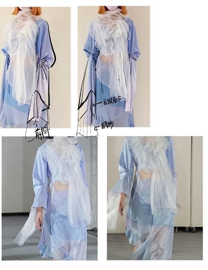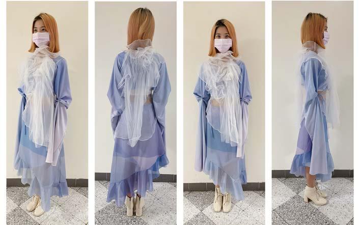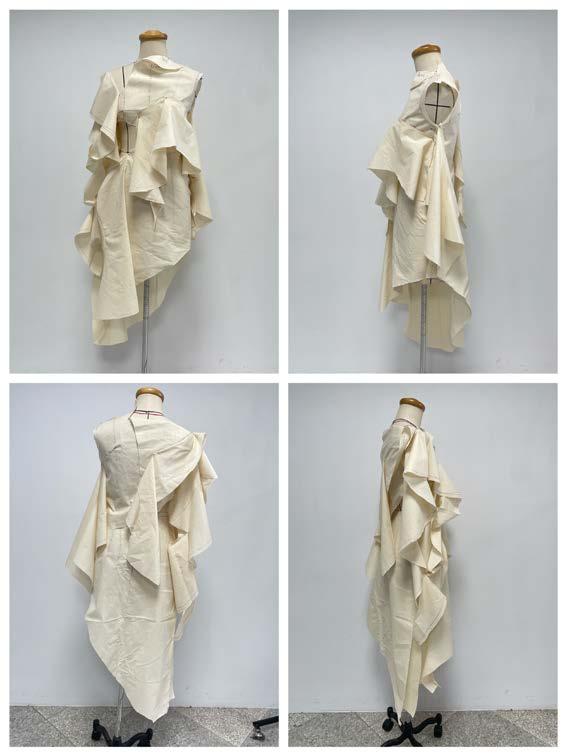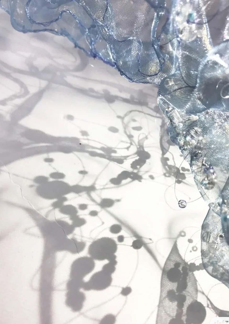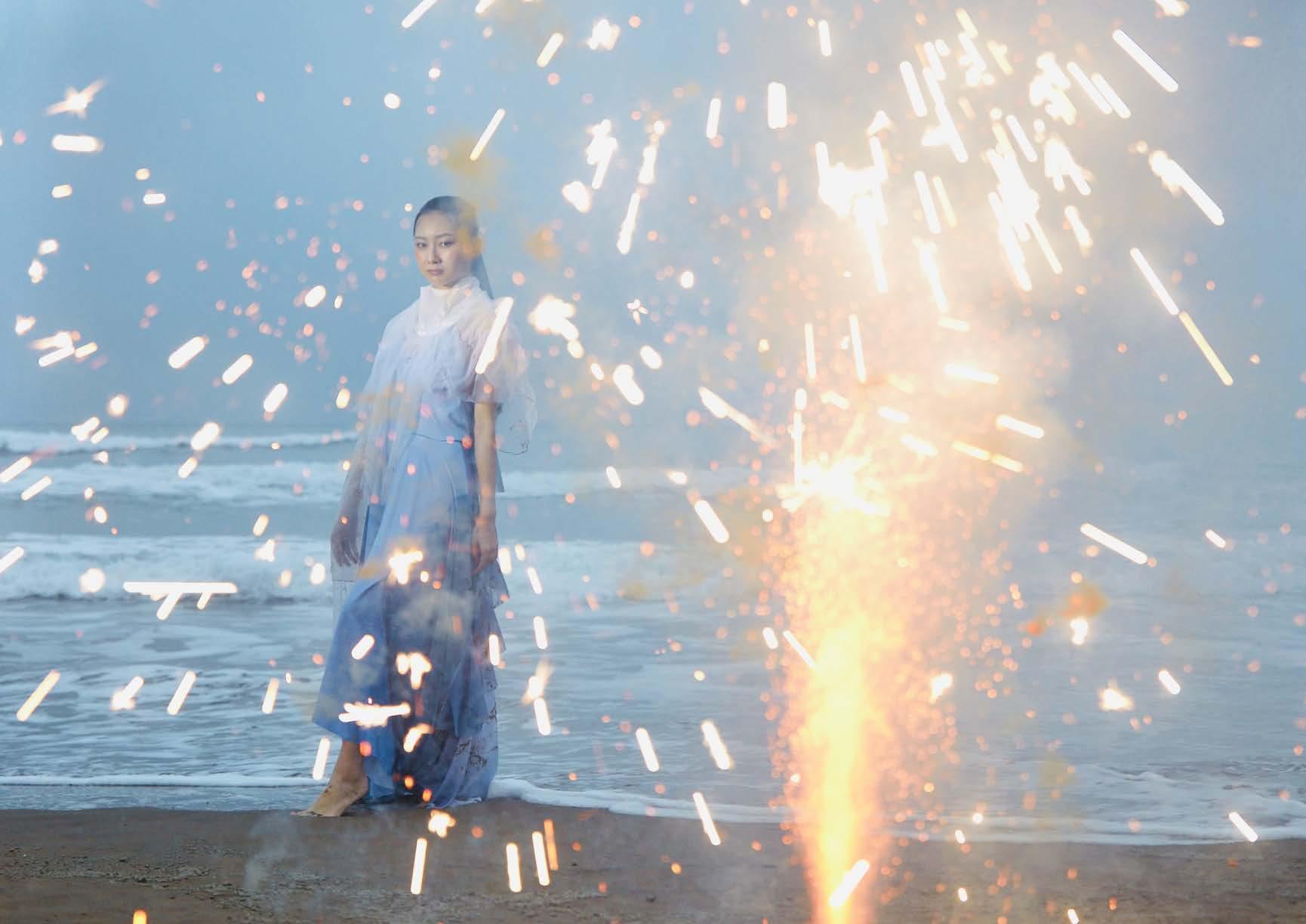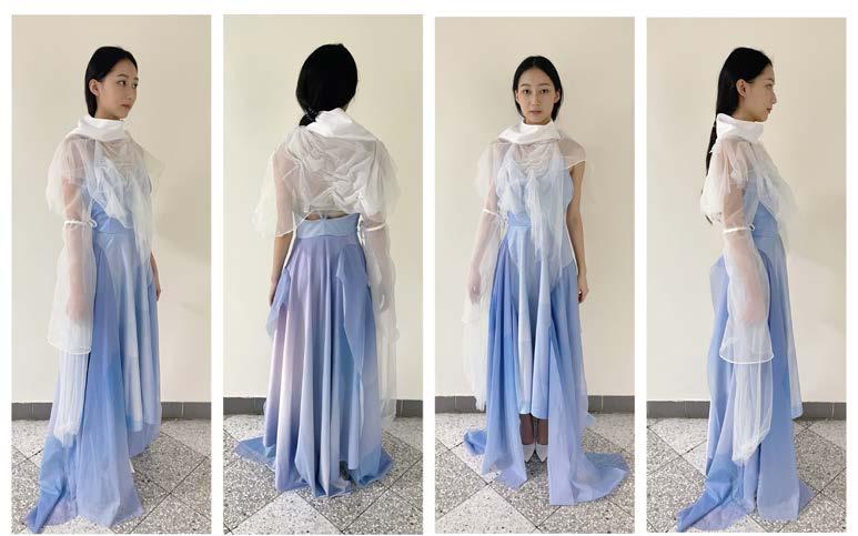 I used digital printing. to represent the gradient color and the reflection of firework on the water. And combined with the different textures of white fabrics.