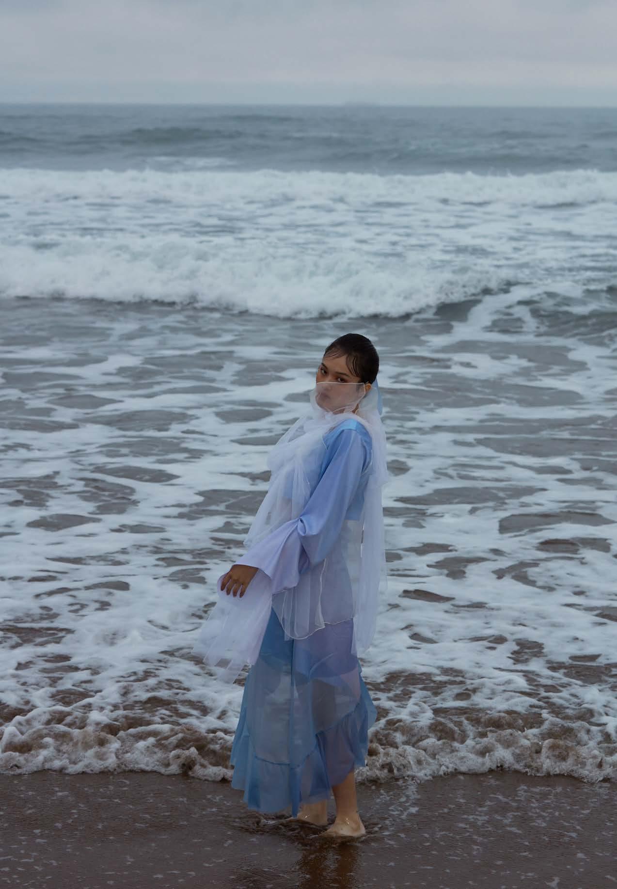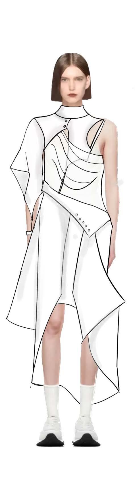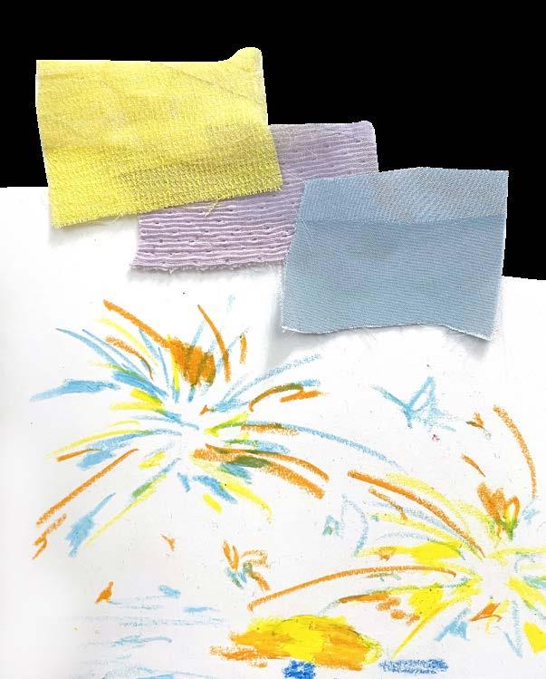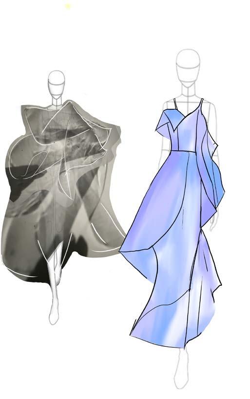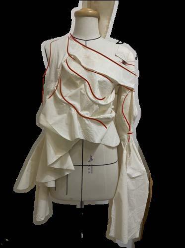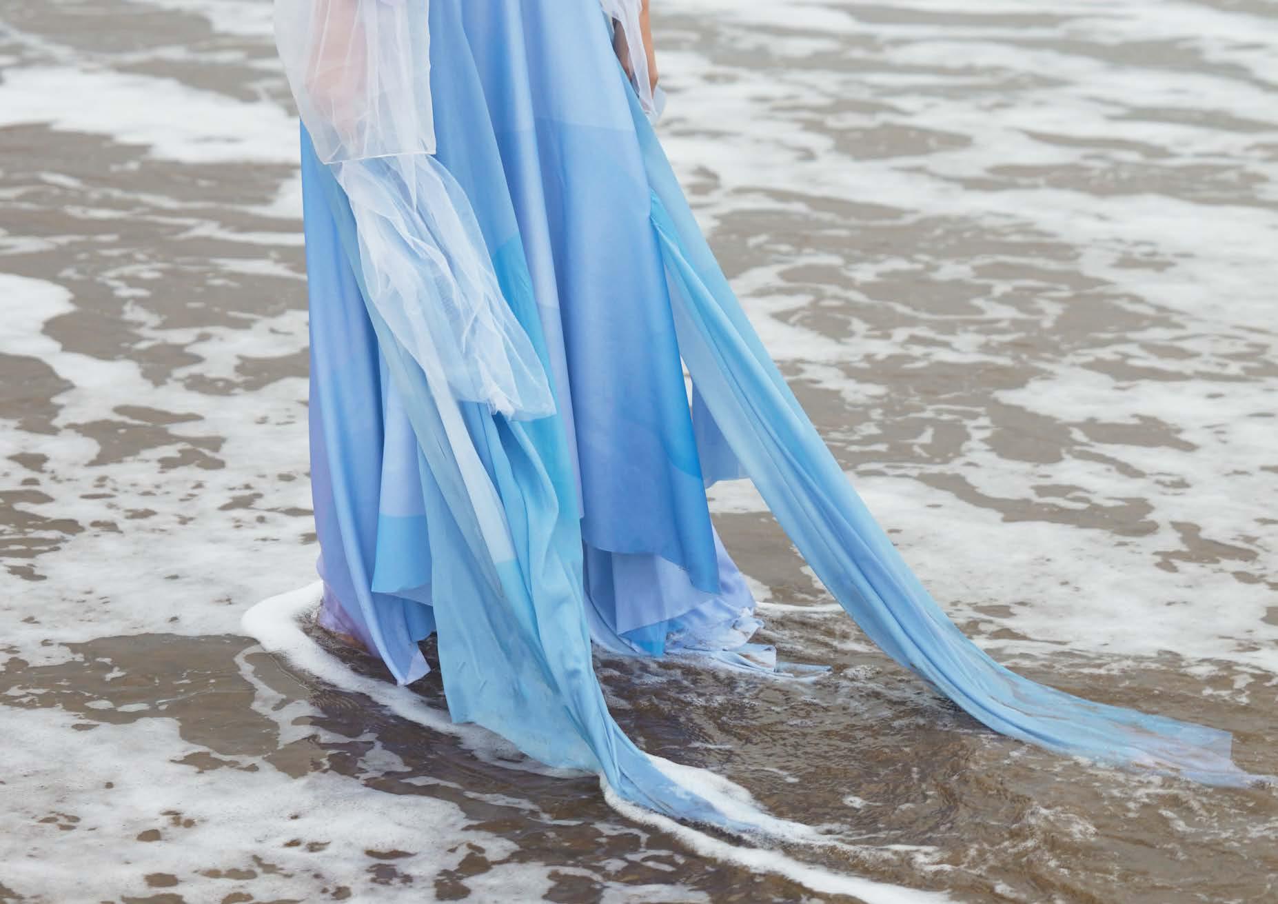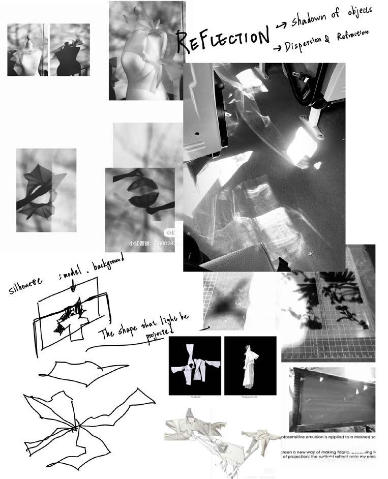 I used digital printing. to represent the gradient color and the reflection of firework on the water. And combined with the different textures of white fabrics.