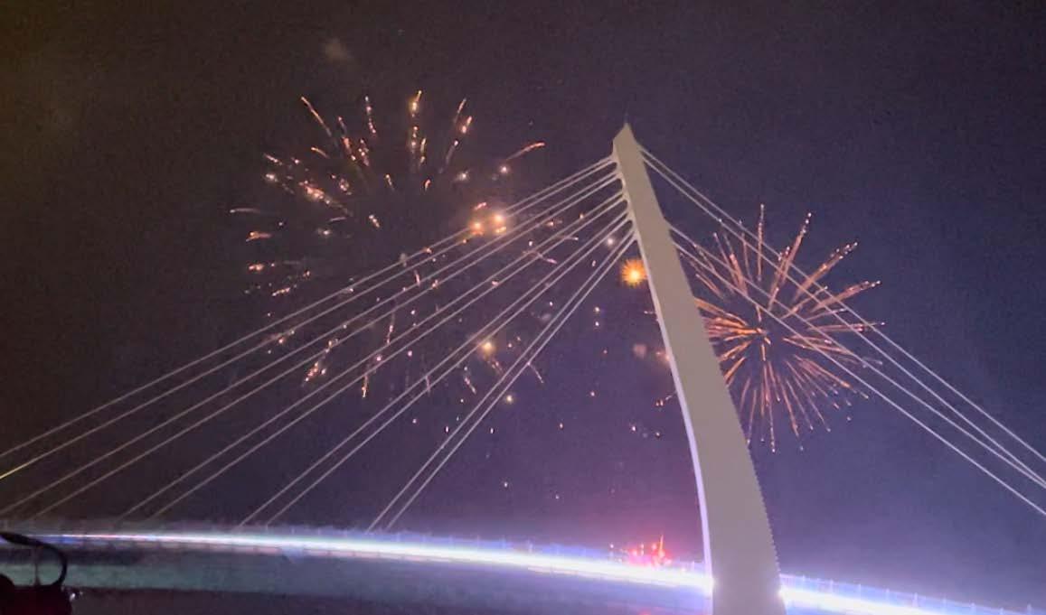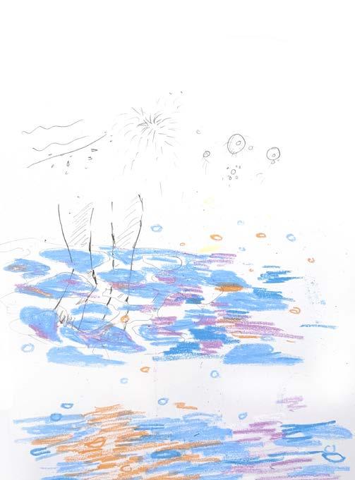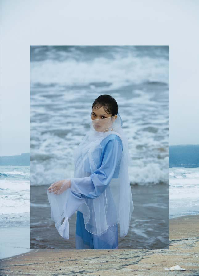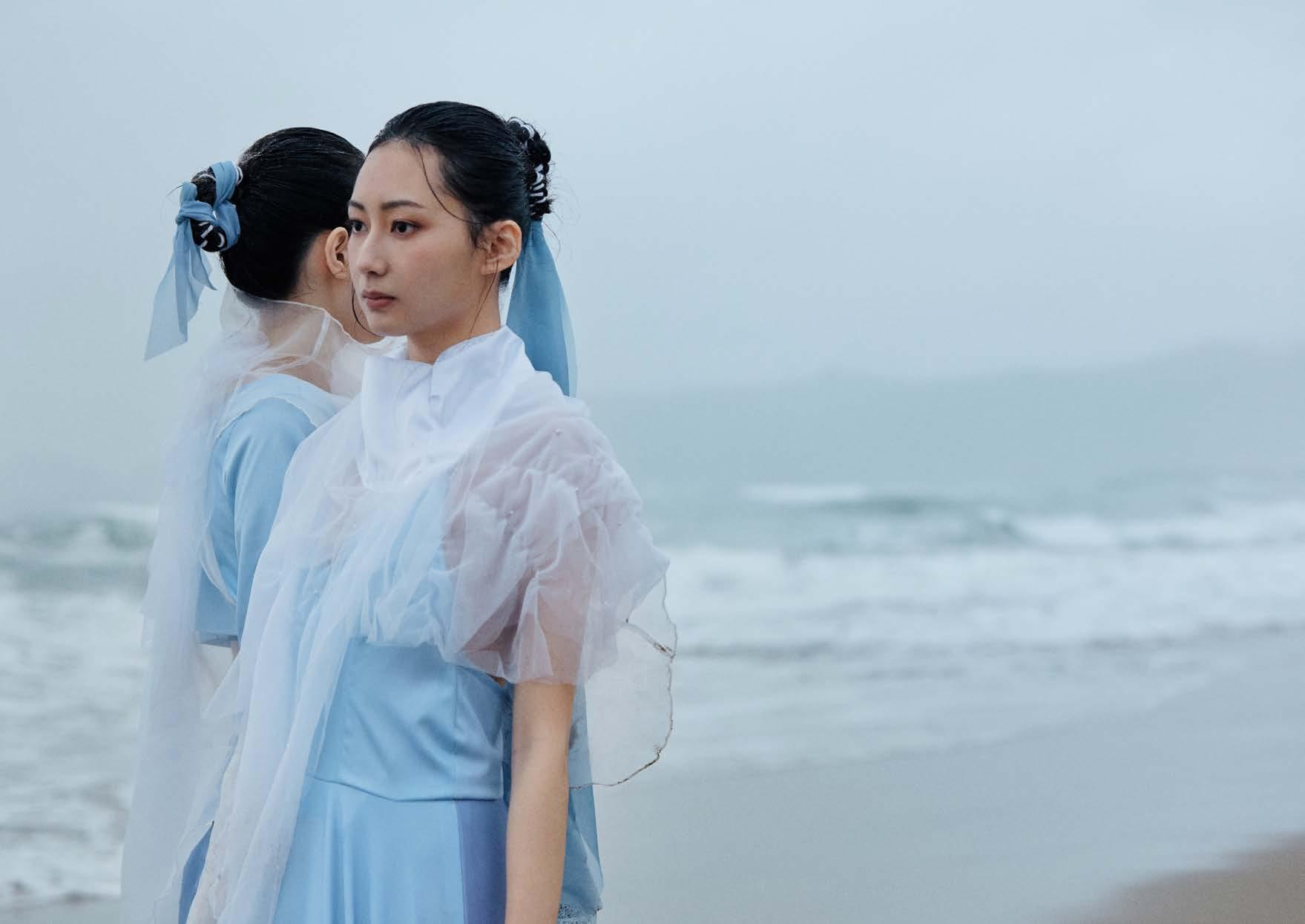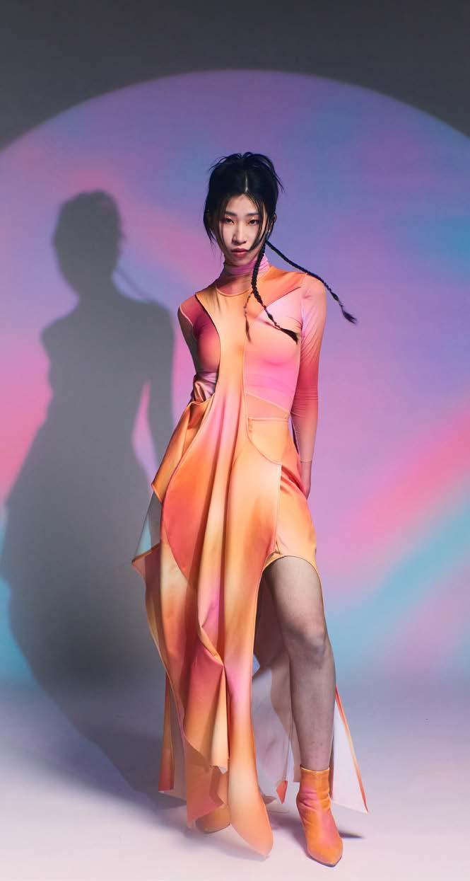I used digital printing. to represent the gradient color and the reflection of firework on the water. And combined with the different textures of white fabrics.