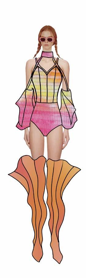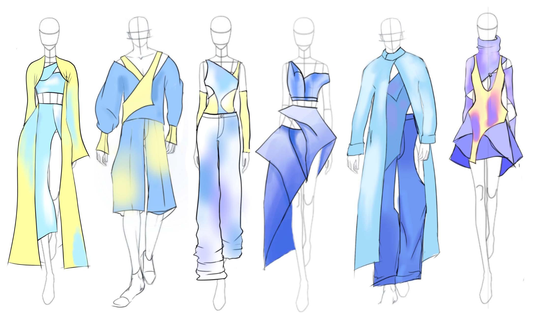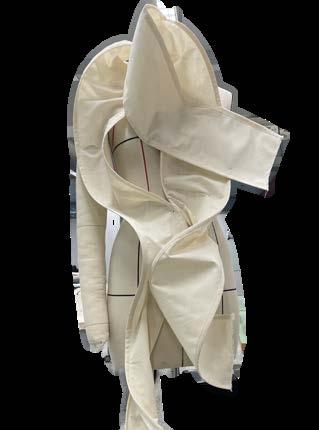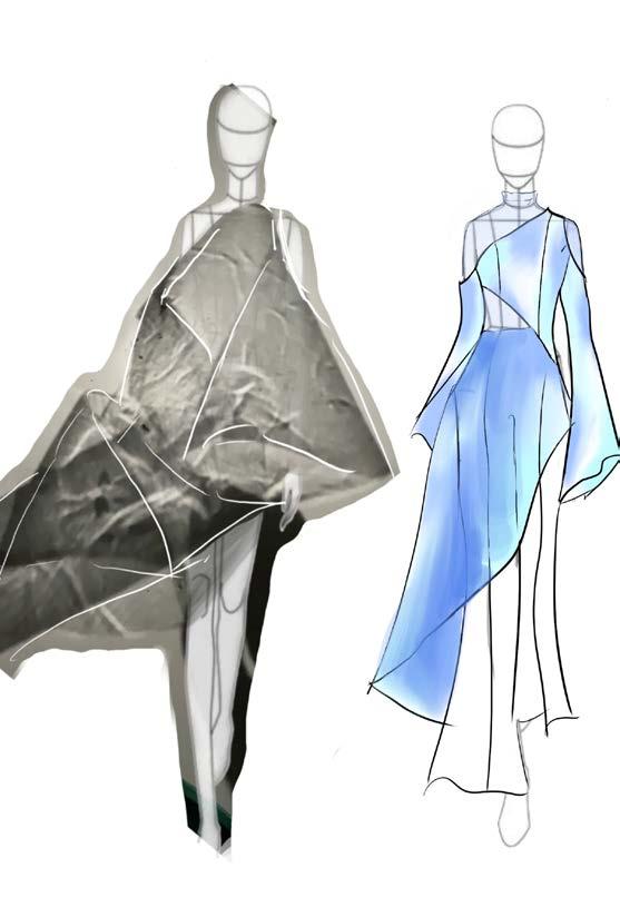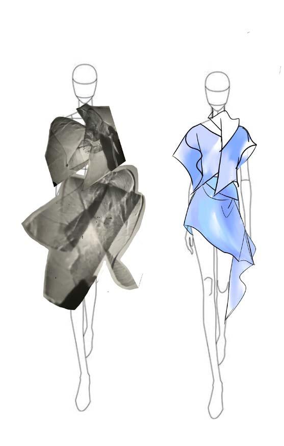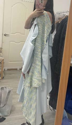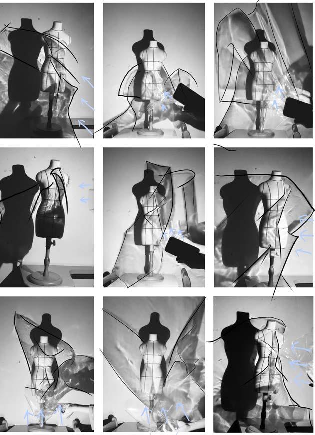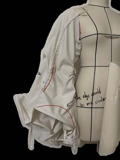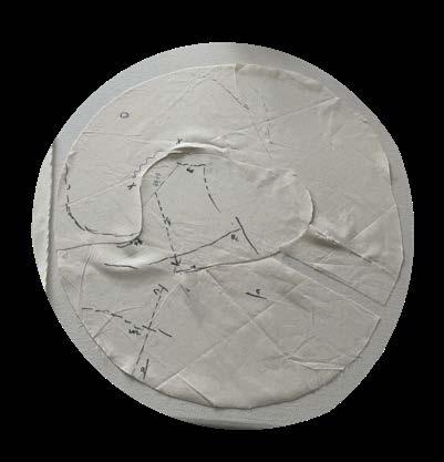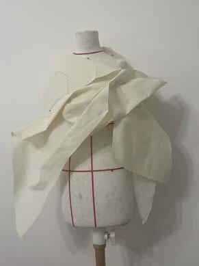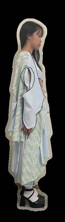 I attempted to create a random curve line. on the patterns and sewed them together. And then the volume would increase due to the seamline.
