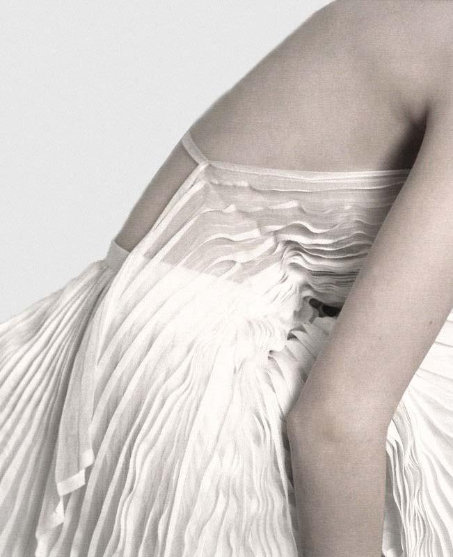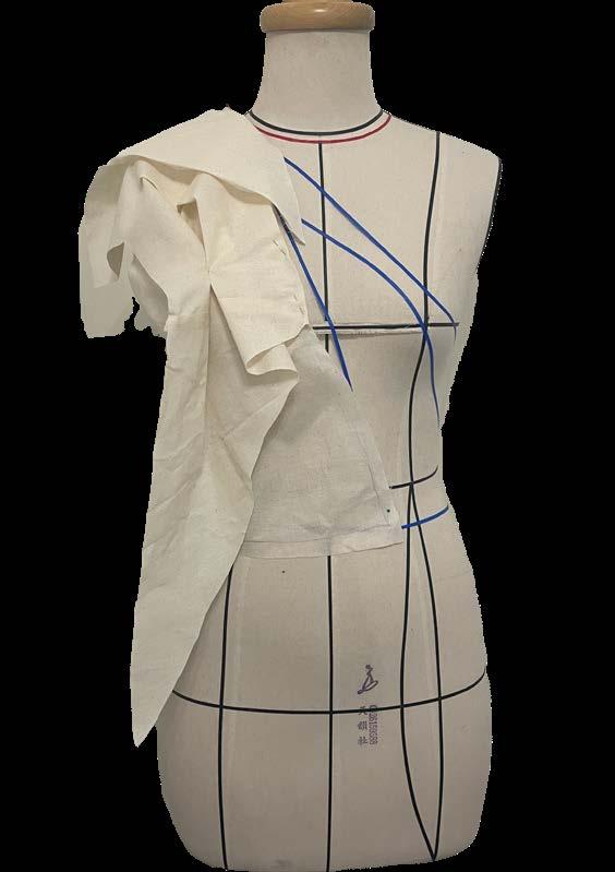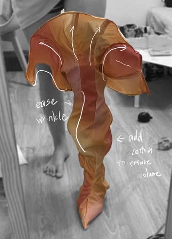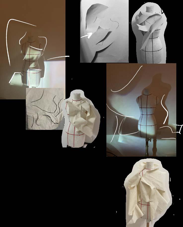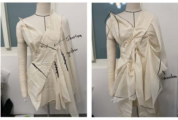 In order to create the texture that looks like water ripples I tried to create irregular pleats on muslin