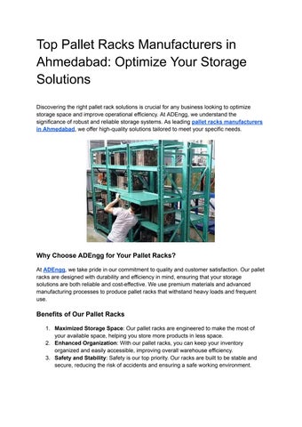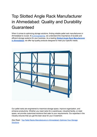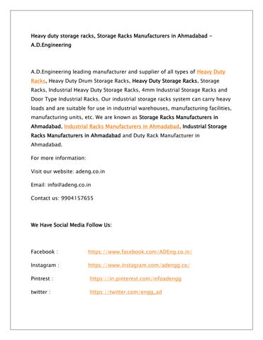 A.D.Engineering leading manufacturer and supplier of all types of Heavy Duty Racks, Heavy Duty Drum Storage Racks, Heavy Duty Storage Racks, Storage Racks, Industrial Heavy Duty Storage Racks, 4mm Industrial Storage Racks and Door Type Industrial Racks. Our industrial storage racks system can carry heavy loads and are suitable for use in industrial warehouses, manufacturing facilities, manufacturing units, etc. We are known as Storage Racks Manufacturers in Ahmadabad, Industrial Racks Manufacturers in Ahmadabad, Industrial Storage Racks Manufacturers in Ahmadabad and Duty Rack Manufacturer in Ahmadabad.