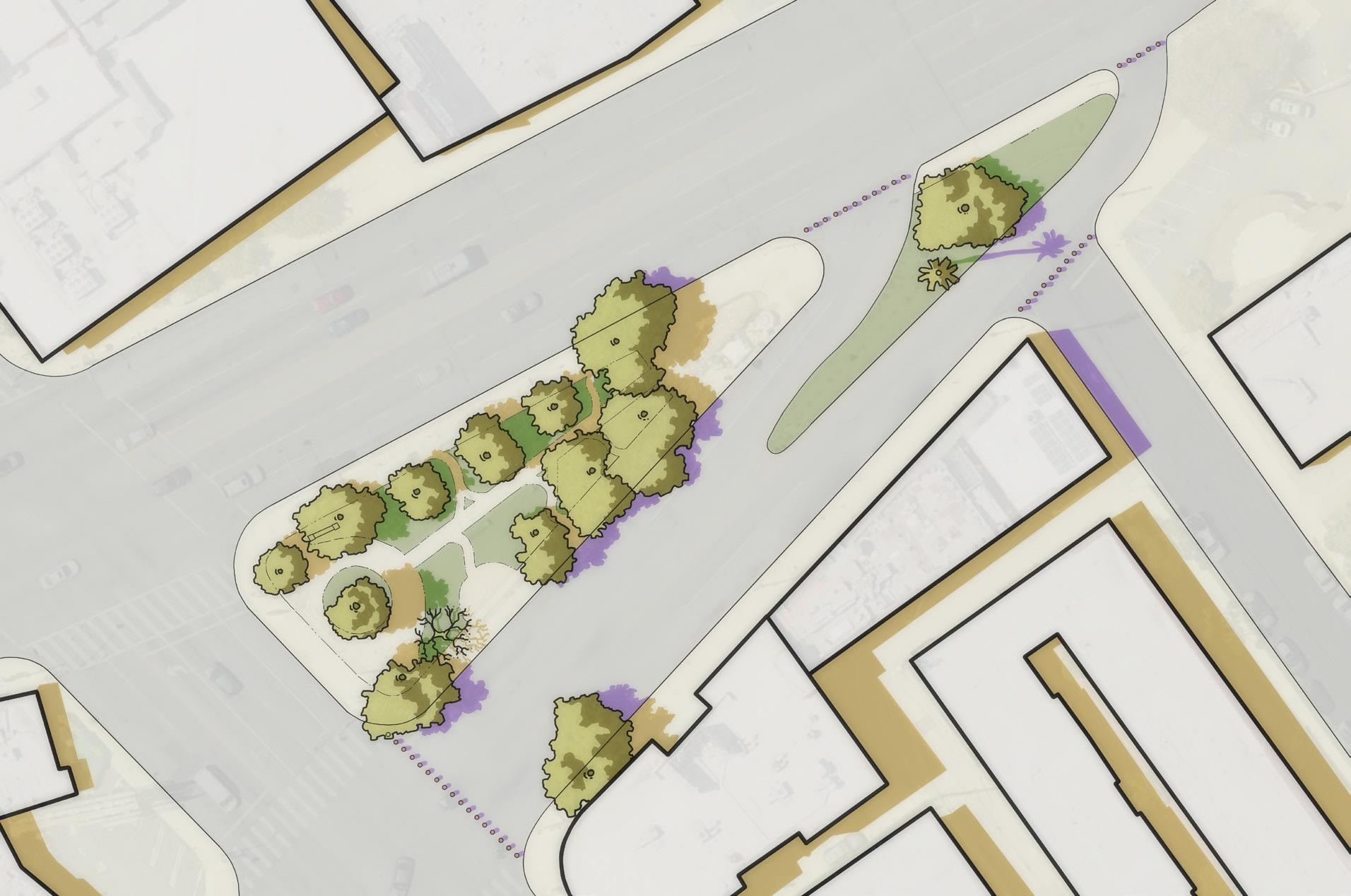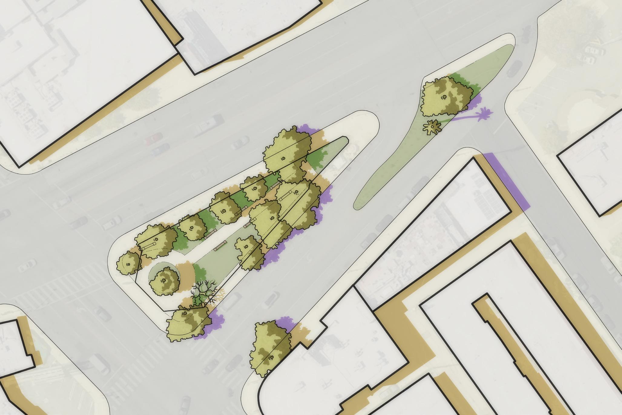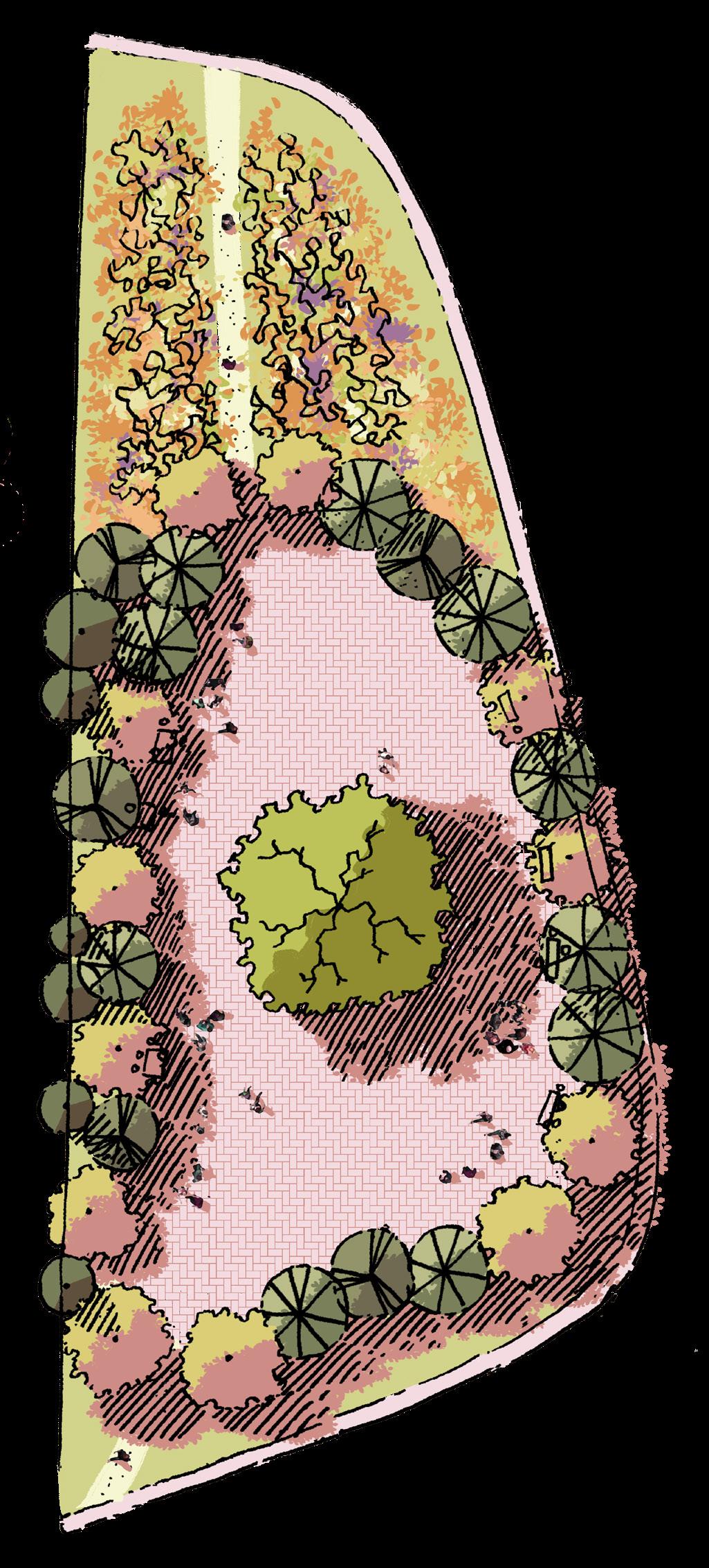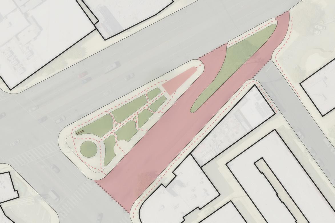 Triangle Pathing – New paths enhance circulation and create green subspaces, encouraging social interaction.