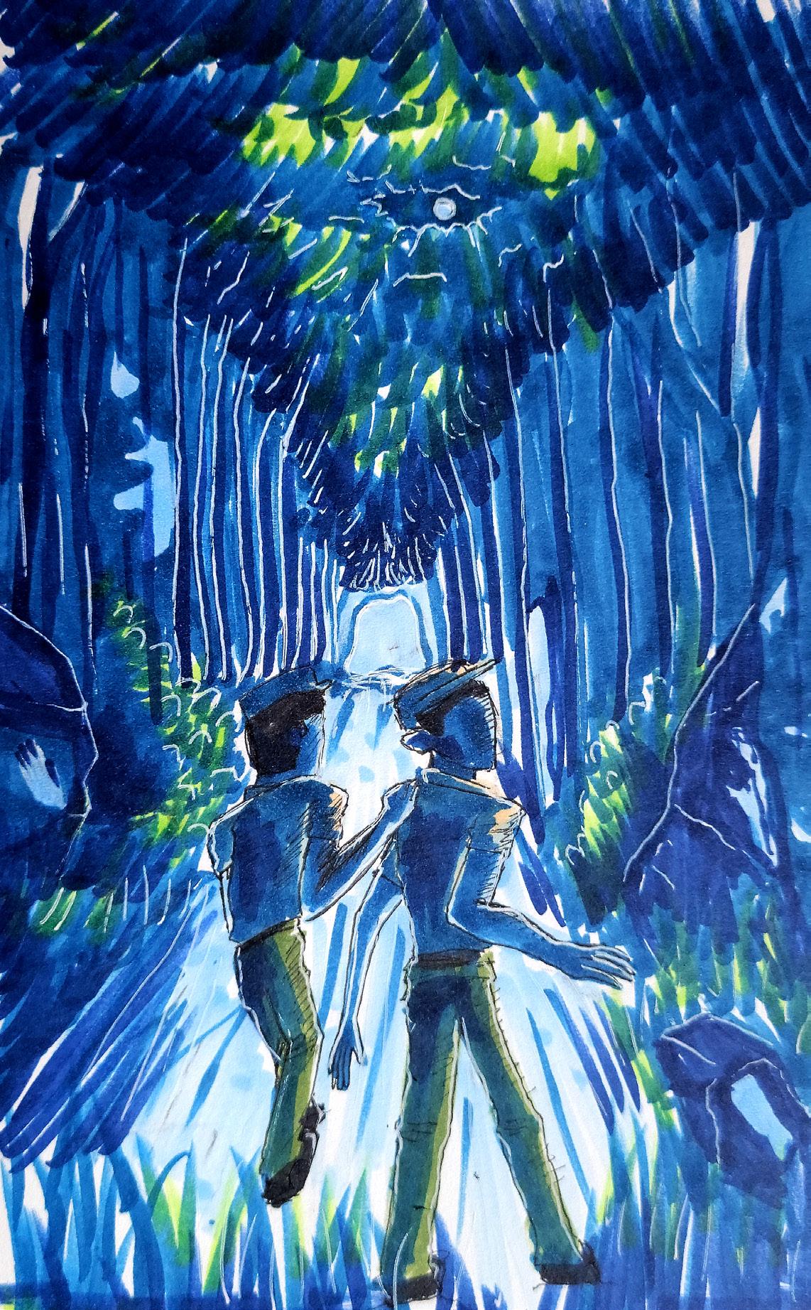 Woodcraft Rangers is a boy and girl scouts organization located in the San Jacinto Mountains. For this project I was assigned a portion of the trail and had to improve it and the trail was called the Rattlesnake Trail but all it had was a small fake snake made of some rocks. I had already decided the trail should be intentionally spooky at night and added spaces for programming during the day.