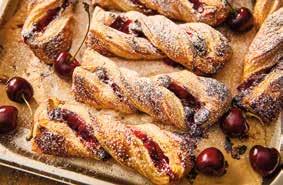 Sweet pastry treats to go are more popular than ever and you don’t need to be a top patisserie extraordinaire to add something homemade to your offering. In fact, here is a great way to reduce food waste whilst creating a delicious pastry that can be enjoyed any time of the day. Use your fruit filling of choice (here I’ve used cherry) and twist it into some puff pastry –great to use up surplus pastry. Bake and drizzle with chocolate for an indulgent but low-cost addition to your food to go menu.