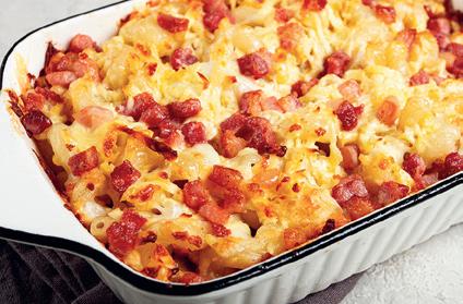 1 Cook the pasta as per the pack instructions, drain and set aside. 2 Preheat your oven to 200°C/180°C fan/ gas mark 6. Chop up all the bacon into small pieces and dry-fry on a medium heat until crispy (stirring as Melt the butter in a saucepan on a medium heat, then stir in the flour and allow to sizzle for one min. Gradually whisk in the milk, stirring constantly. Allow the sauce to thicken and reduce the heat. 4 Chop the brie into chunks and stir into the sauce with the cheddar, letting it melt. Stir the pasta and most of the bacon into the sauce, transfer the mix to an ovenproof dish, and sprinkle the remaining bacon across the top. Bake in the oven for 15 mins until bubbling and golden.