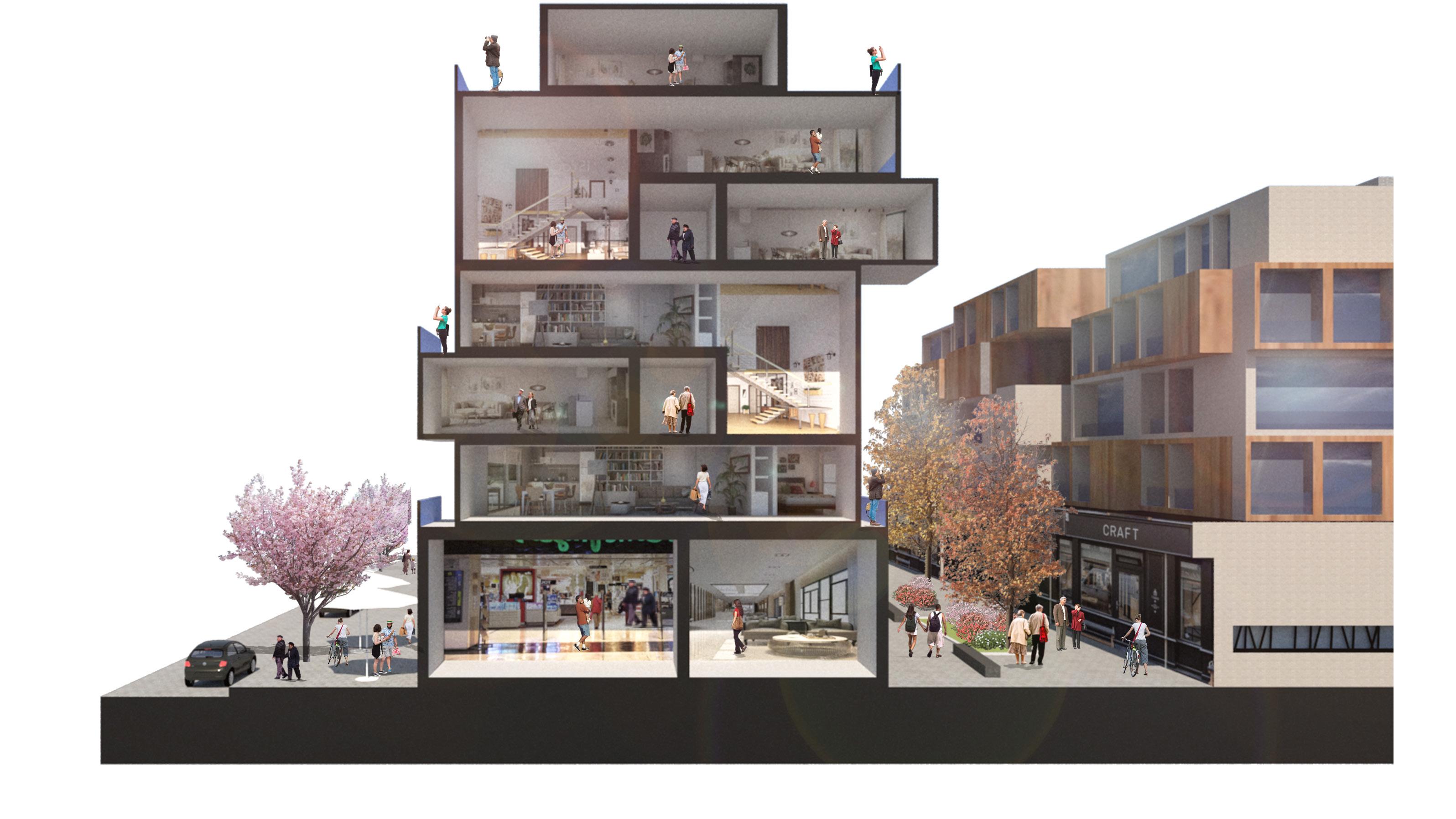 • A diverse and vibrant marketplace within the mixed-use development for small local businesses and the community