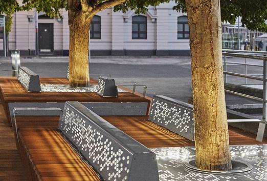 Photo of street furniture on Active fronts page Street+ Garden. (2021). Projects. [Online]. Available at: https://streetandgarden.com/project/hobart-waterfront/. [Last accessed 14 April 2021].