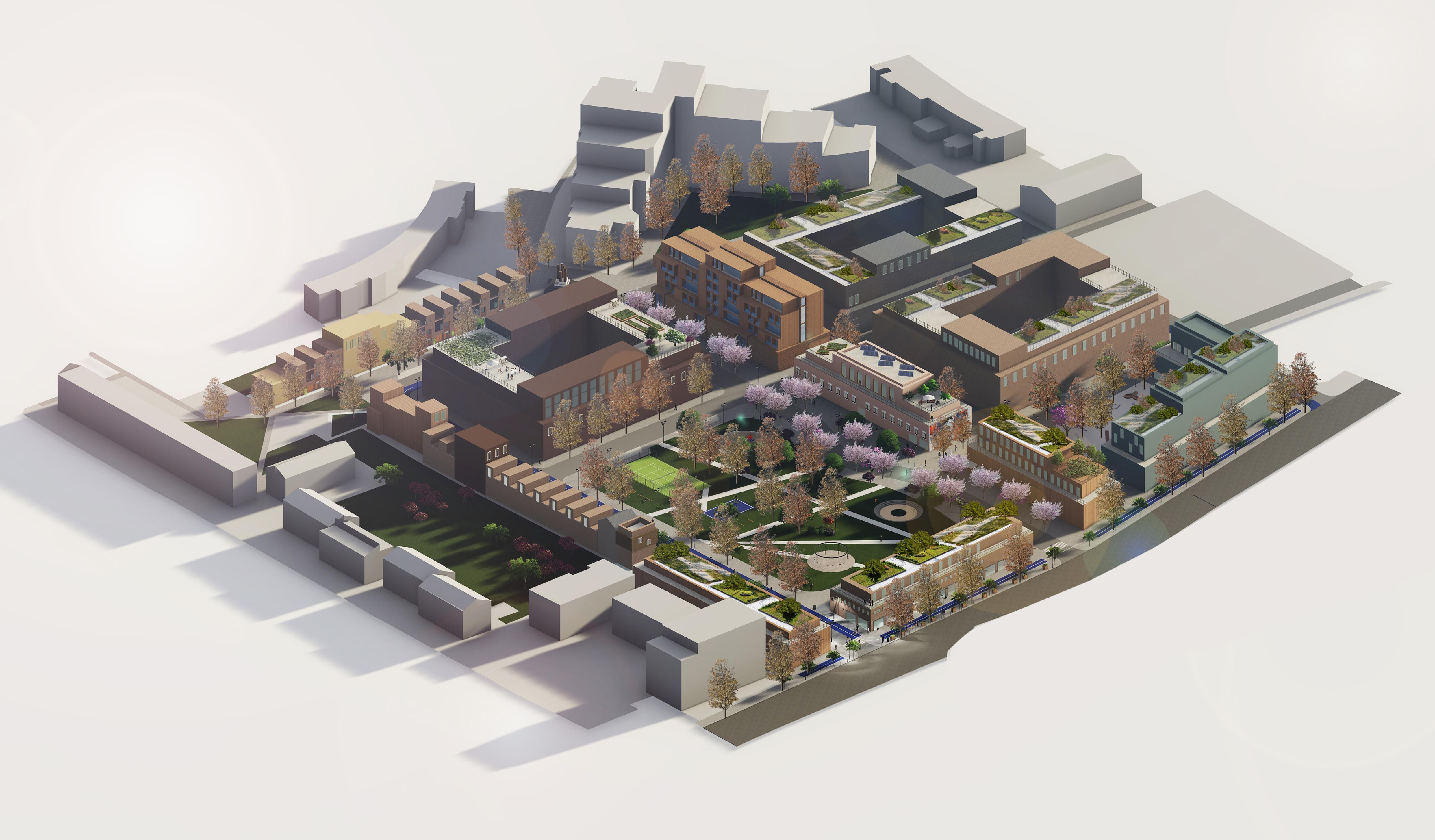 ‘Create an active and vibrant neighbourhood aiming to bring the Holloway community together. Rooted in the historic legacy of Holloway Prison, the design of the new neighbourhood is informed by local aspirations and adapted to current needs by which it also Injects diverse range of social and economic spaces’