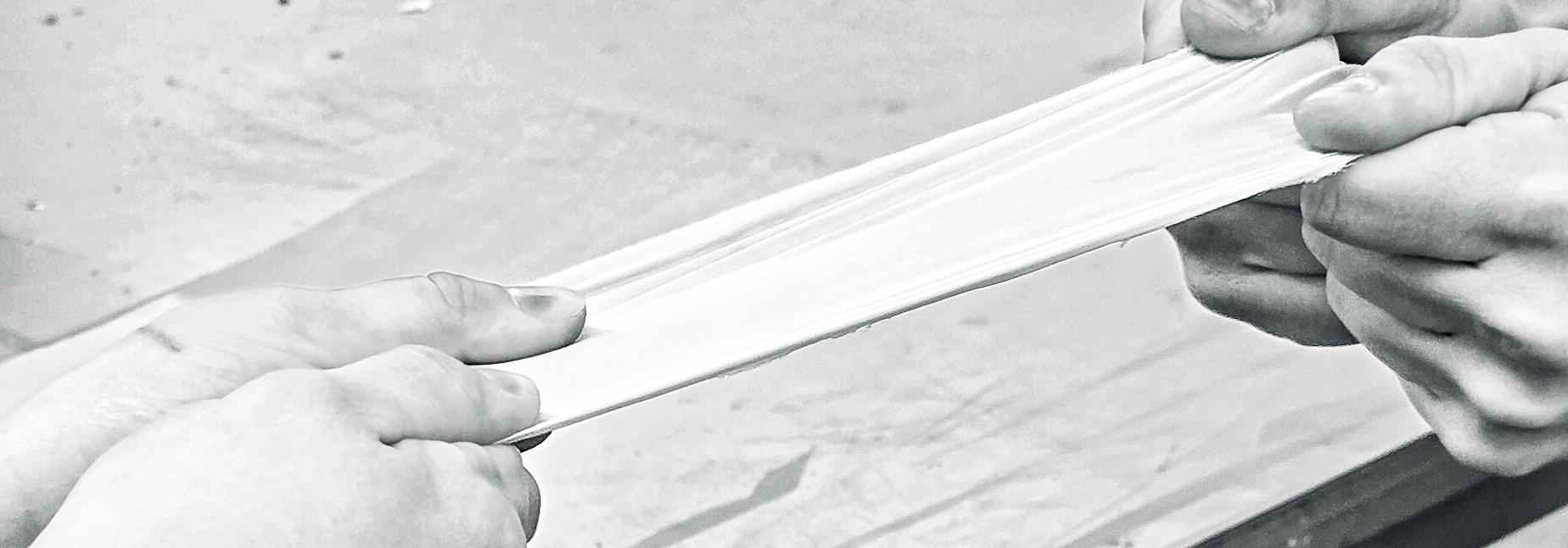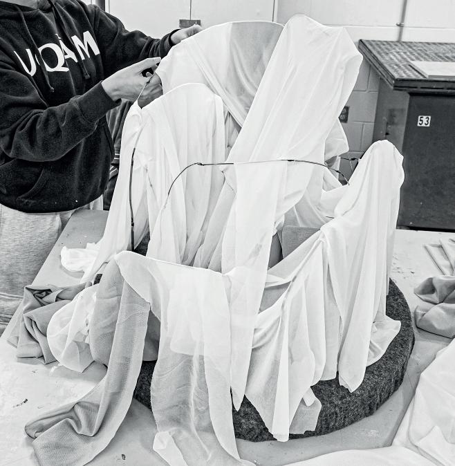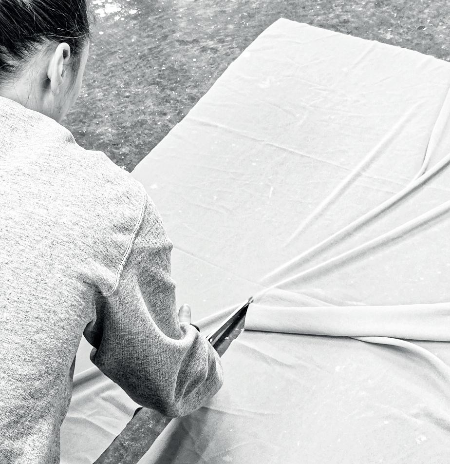 Déposer, et ainsi draper, sculpte le relief par la souplesse du matériau. Naturellement flottant pour la fleur, il est pour la montagne une continuation du sol, révélant les différences entre les sommets et les creux. Pour les yeux, c’est le regard déposé derrière le drap des paupières. Dans la mer, il incarne la tranquillité de la sinuosité des vagues. À Paris, il devient volontaire, à l’image des grands axes ou sinueux à l’image de la vieille ville. Pour la main, c’est le pliage même de la peau posée sur les os. Dans l’intimité de l’amour, c’est se mettre à nu.