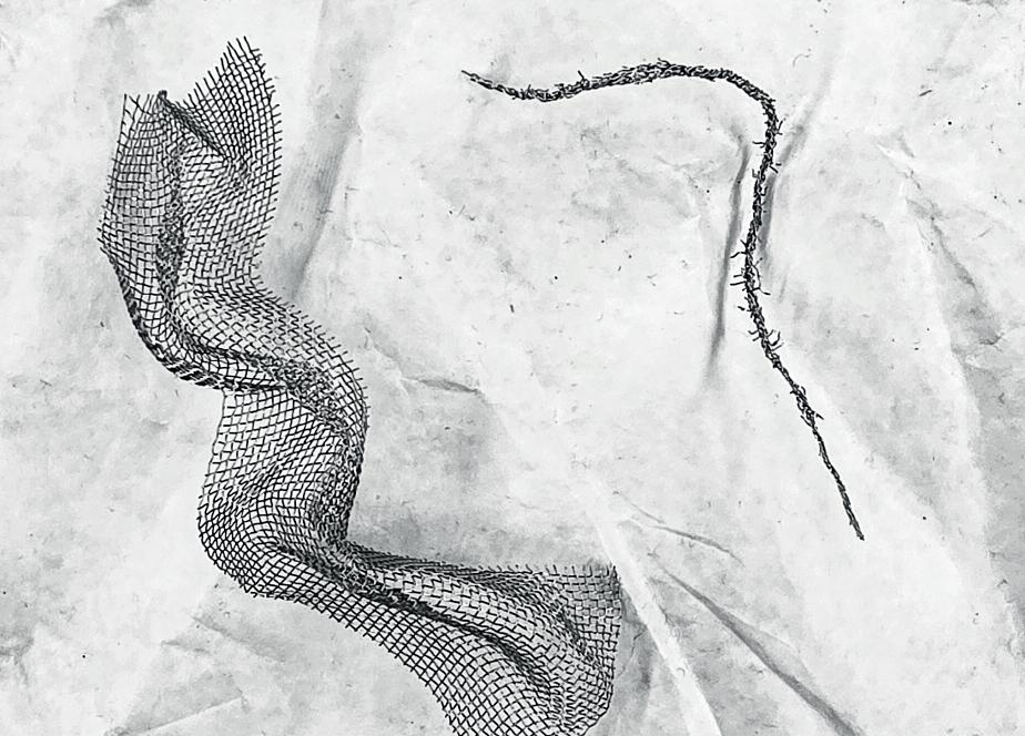Lasoudure entre les lamelles est le point de contact entre l’équilibre et la rupture. Elle permet la rigidité et la croissance de la fleur, mais aussi sa fragilité. Pour le grimpeur, elle est le pont suspendu entre deux crêtes. Pour la mer, elle colmate les failles, mais sépare les mondes. À l’échelle de la ville, elle représente les jonctions entre le vieux et le nouveau Paris, entre les os de la main, ou la connexion de l’œil au cerveau. Dans l’amour, la soudure prend la forme de nœuds : ces liens indéfectibles, qu’ils soient amicaux, familiaux ou passionnels.