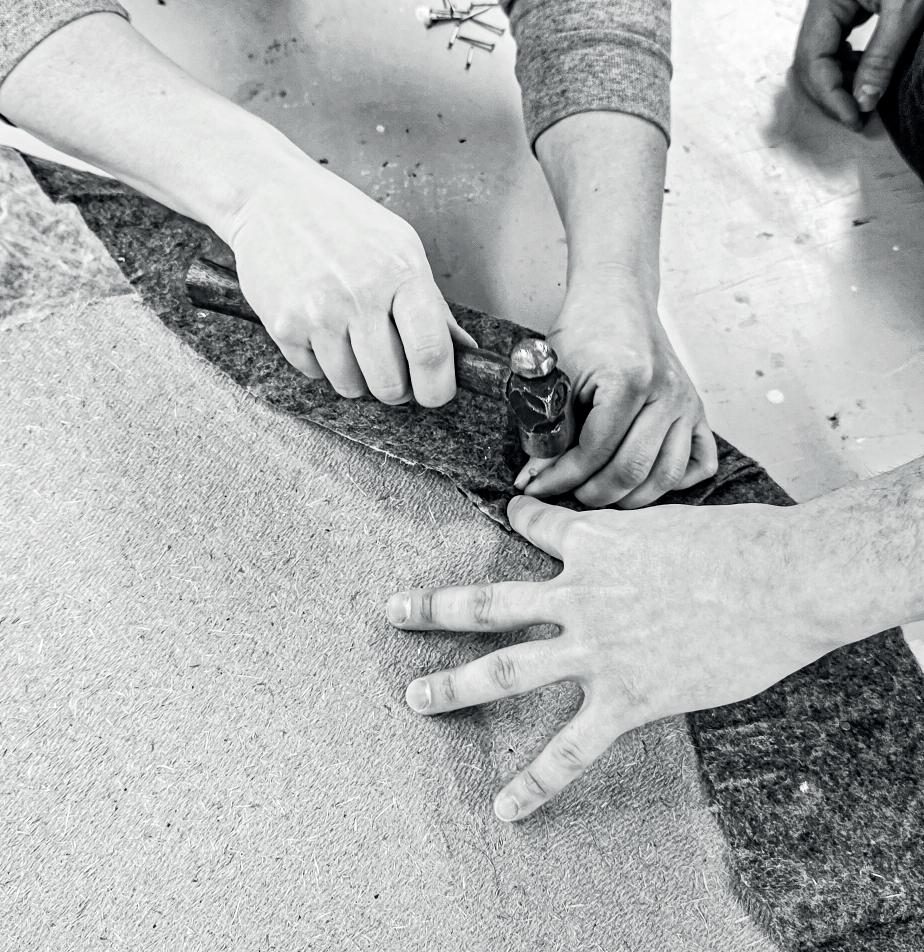 De ces mots, nous avons érigé notre imaginaire commun. Un imaginaire bien qu’unilatéralement joyeux nous ramène à une forme de complexité entre les mots et dans les mots. Ainsi, nous avons voulu repérer leurs points communs en établissant un champ lexical plus large qui éveillerait en nous ce qu’évoquent et représentent symboliquement pour ces thèmes. Après réflexion, nous nous sommes décidés à explorer l’univers du textile et plus tard celui du métal.