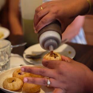 cheese and spices between slices of deep-fried bread. From the other, Perzen hands around hot cups of chai. Greeted by warm, flavourful notes of nutmeg, cinnamon and cloves, we look at each other, eyes wide in agreement. Not a single drop is wasted.