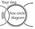Place one of your own rings on top of one of the circle diagrams. Your ring size is the circle that matches the inside diameter of your ring. If your ring falls between sizes, order the next larger size.