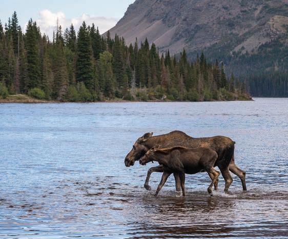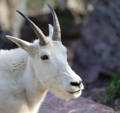 WHERE TO GO The park’s classic drive, the 50-mile Going-to-the-Sun Road, provides fine opportunities for wildlife watching, especially at Logan Pass, where mountain goats and bighorn sheep can be seen wandering near the Visitor Center. The Many Glacier area is good for spotting grizzly bears on the slopes above Swiftcurrent Lake. The park wisely emphasizes wildlife safety, encouraging hikers to carry bear spray and suggesting that firsttimers join ranger-led group hikes. Or just scout Glacier’s wild denizens from your car.