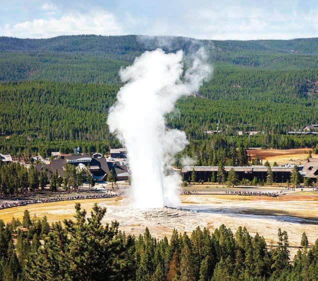 EAT AND DRINK For the park’s nicest breakfast, lunch, or dinner, the Lake Yellowstone Hotel Dining Room serves high-quality food in a serene lakeside setting. The Old Faithful Inn’s Bear Paw Deli is a fine option for grab-andgo coffee and sandwiches.